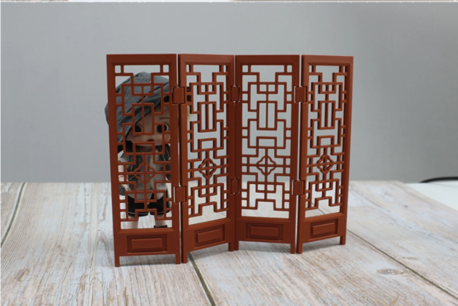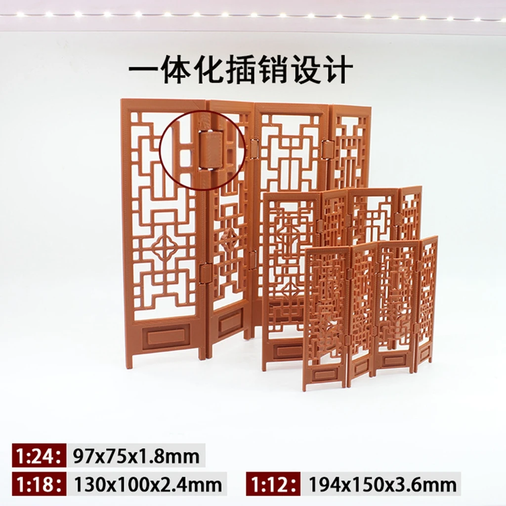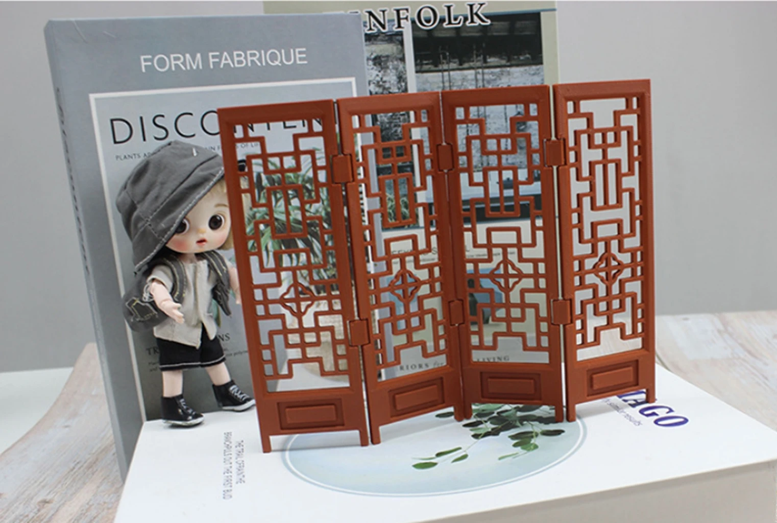 1/12 Dollhouse Miniature Furniture Model Mini Screen Antique Imitation Wooden Partition Doll Decoration Accessories Toys