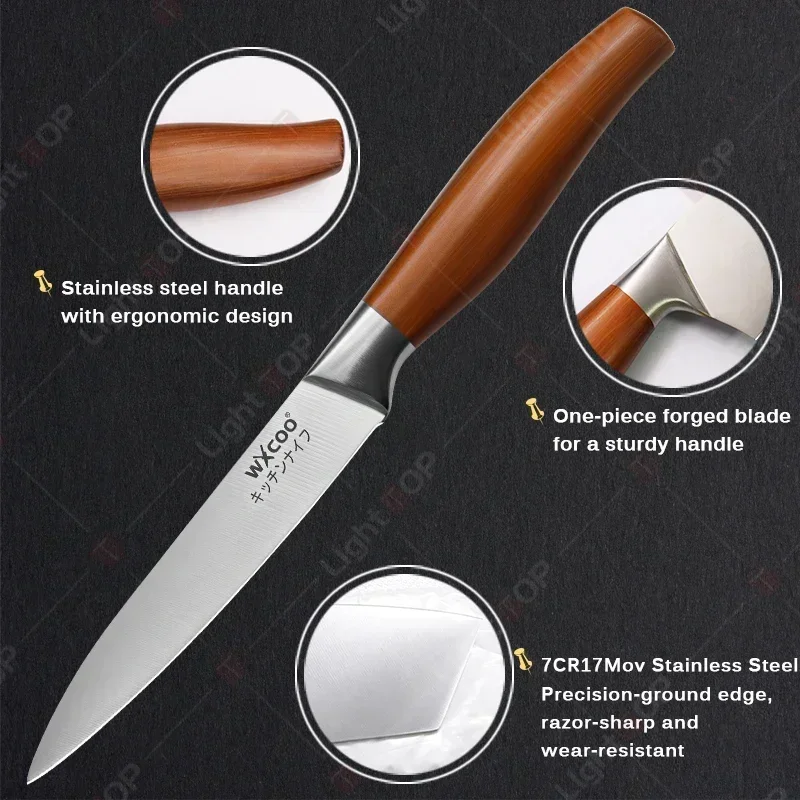 Feature: Eco-Friendly,Stocked,Fruit Knife Wooden Handle,Household Paring Knife,Cooking Chef's Knife,Utility Knife,Meat Cleaver Boning Knife,Fruit Vegetable Slicing Knife,Kitchen Accessories,Kitchen Knife with boc