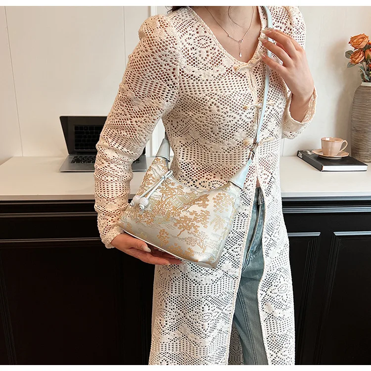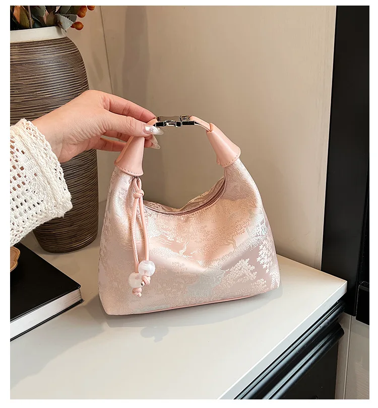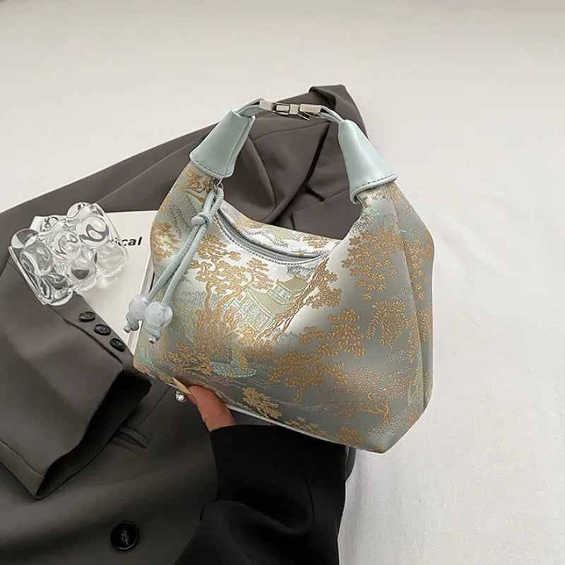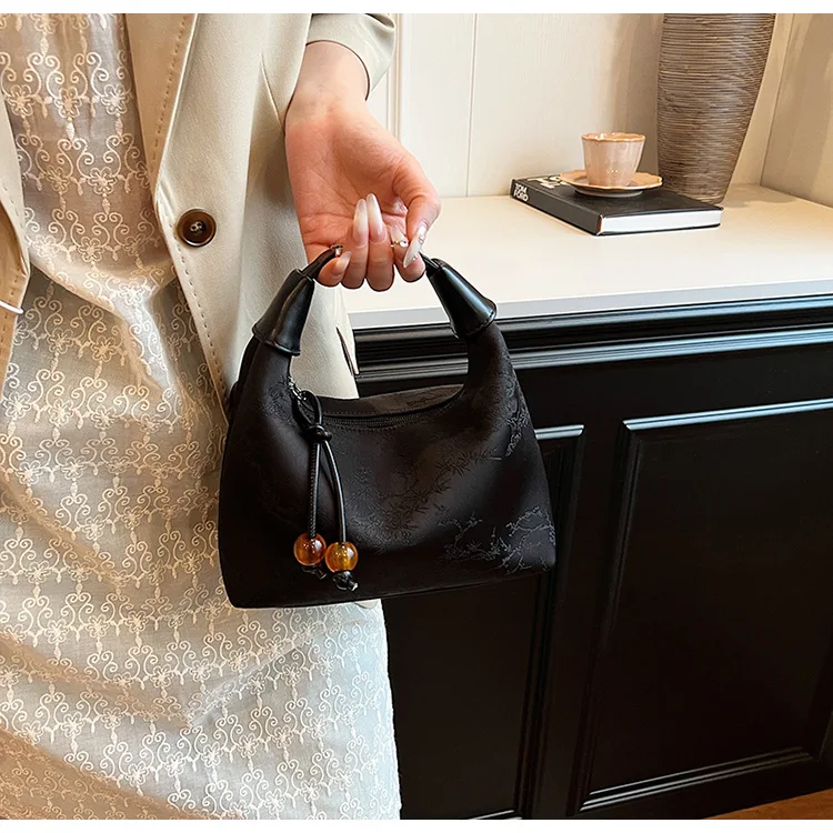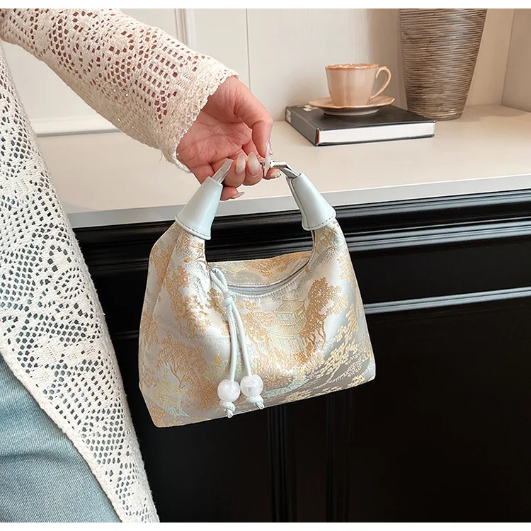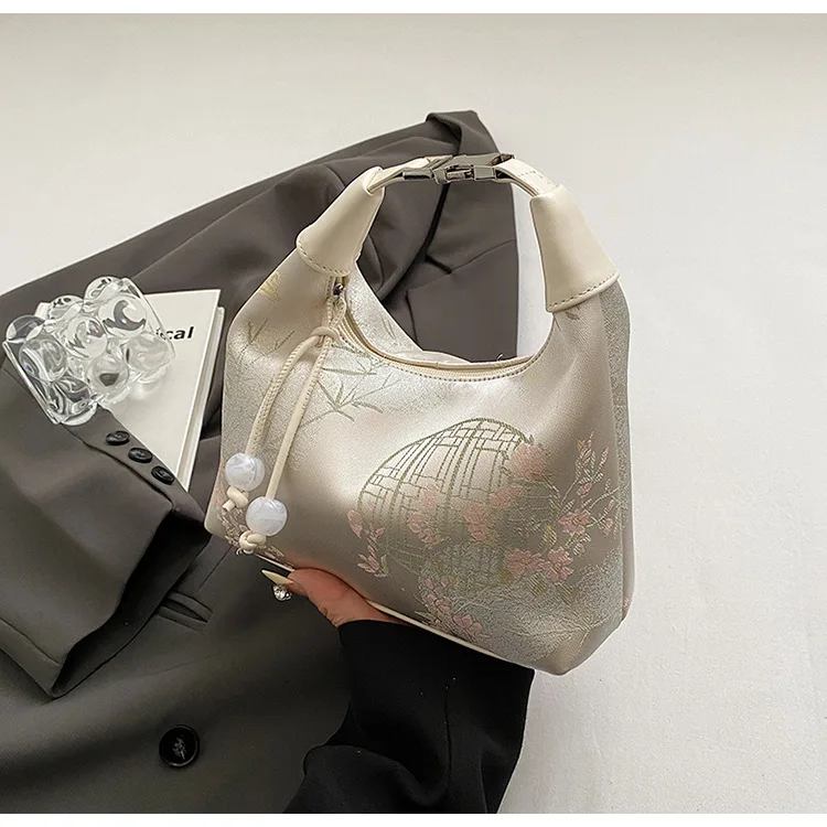4 Colors Embroidered Chinese Style Handbag Zipper Canvas Pea Purses Adjustable Luxury Cheongsam Bag Work