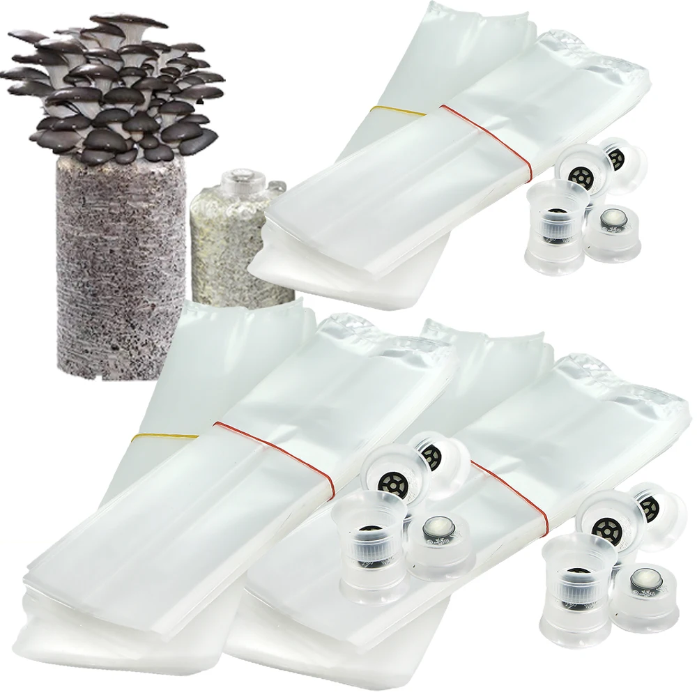 50/100PCS Mushroom Spawn Grow Bag with Sealing Cotton Filter Cap Heat-resistance Plastic Planter Bags Bamboo Fungus Ganoderma