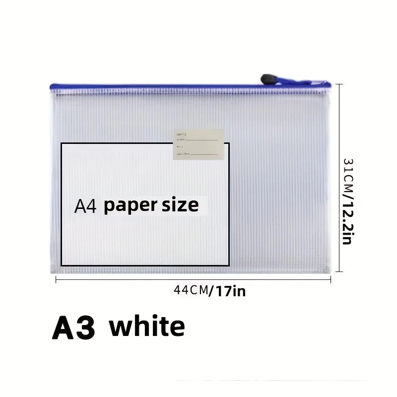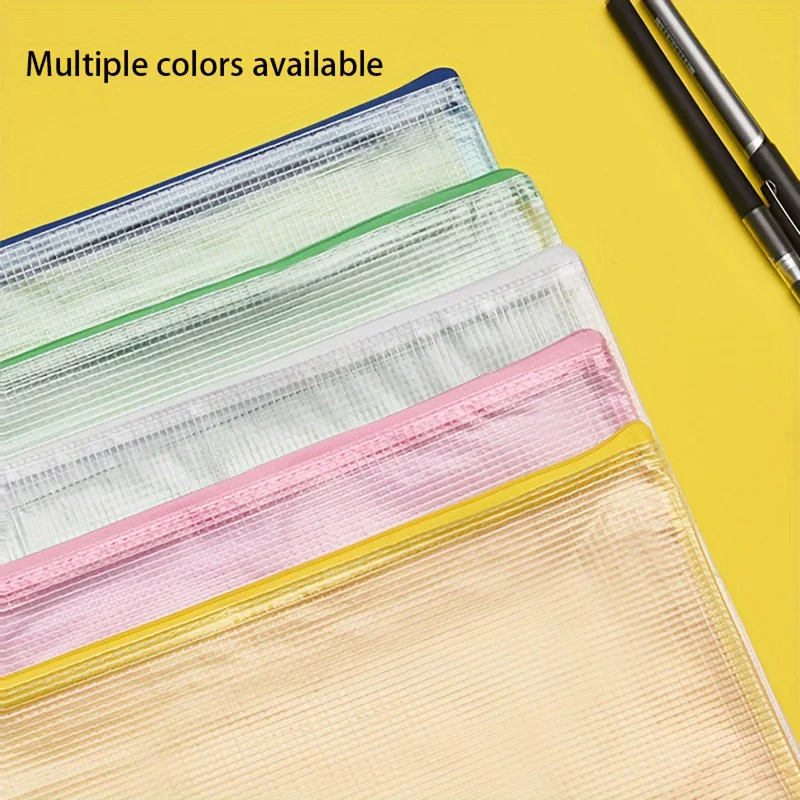 5pcs Transparent Zipper Storage Bag A3 A4 5 Plastic Mesh Waterproof Storage for Files Toys Stationery for Office Home Travel Use
