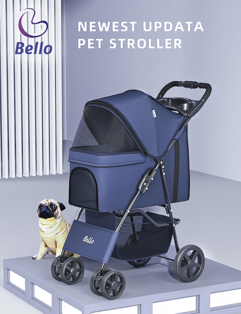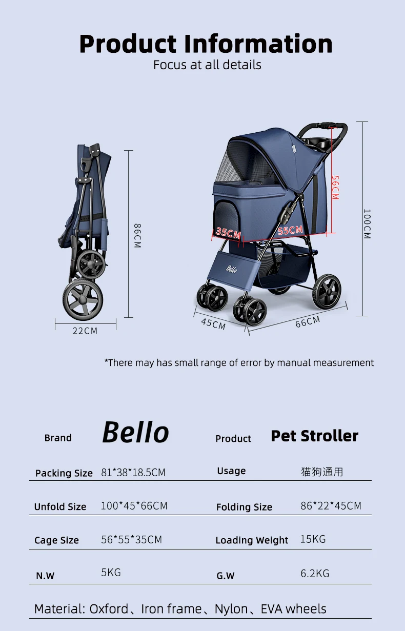 (Ready to Ship) Manufacture Cheap Pet Stroller for Cat and Dog Outdoor Walking One-Hand Easy Fold Trolley