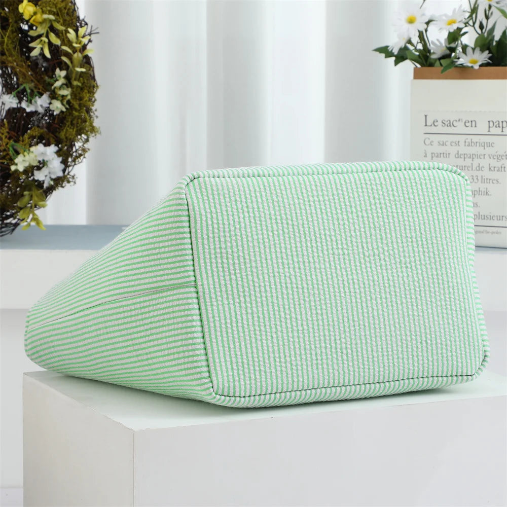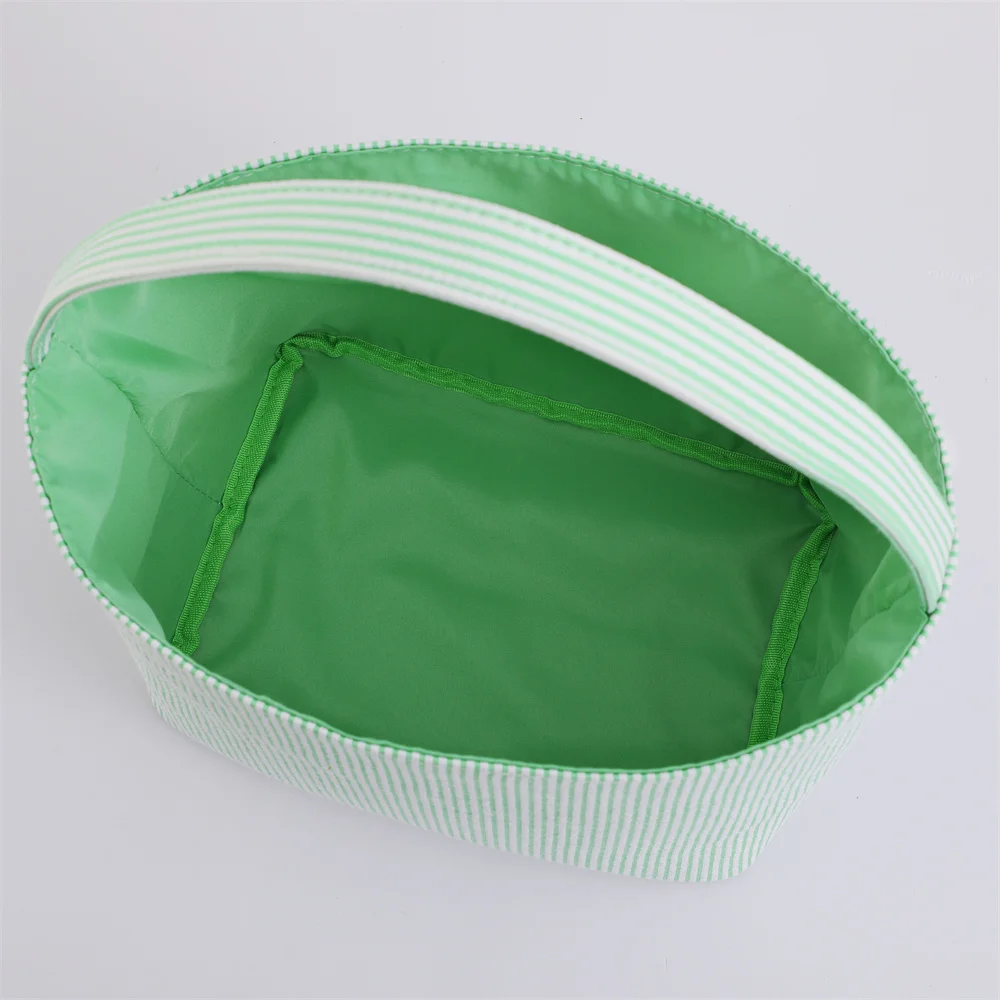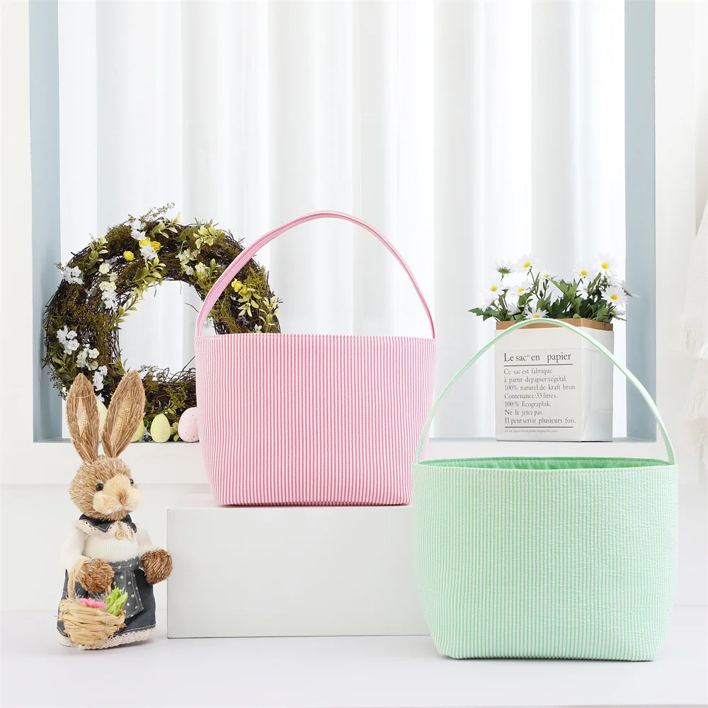Seersucker Easter Basket Halloween Stripped Bucket Kids Boys Girls Egg Hunt Carrying Gift Tote Bag Toys Party Decoration