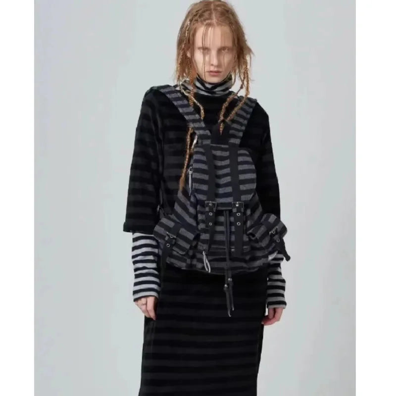 Striped Backpack Jeans Same Japanese And Korean Functional Casual Plaid Backpack Large Capacity Couple Crossbody Bag Backpack