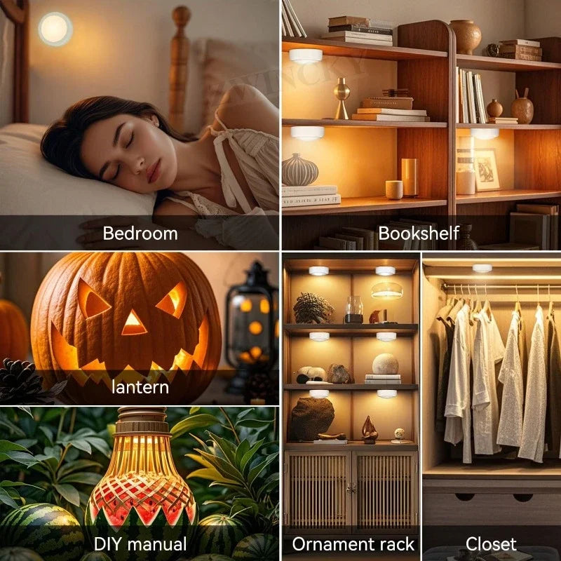 * BATTERY POWERED & EASY INSTALLATION: These under cabinet light is powered by 3 AA batteries(Note: batteries are NOT included in the package.), low power consumption, energy-saving, and environmental protection, just touch it directly, don't worry about the risk of electric shock for children. You can quickly and easily install the puck light in any place you need to illuminate it with 3M tape (please keep the adhesive surface dry and clean). No drills, No screws, and No Ugly Holes in the Furniture.