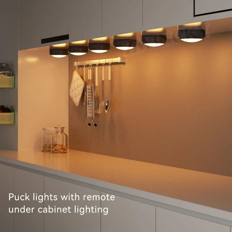 * HIGH QUALITY & LATEST STYLE: LED Under cabinet light is a high-quality product with a diameter of 7.6cm/3inch. From material to design, wireless led puck lights with remote embody the highest level of craftsmanship. Super bright shell with extraordinary texture, when you hold it in your hand, you will find that you get more than just one Lamp but an exquisite convenient lifestyle. A Great Solution for the trouble of finding things on your shelves or cabinets without a light source!