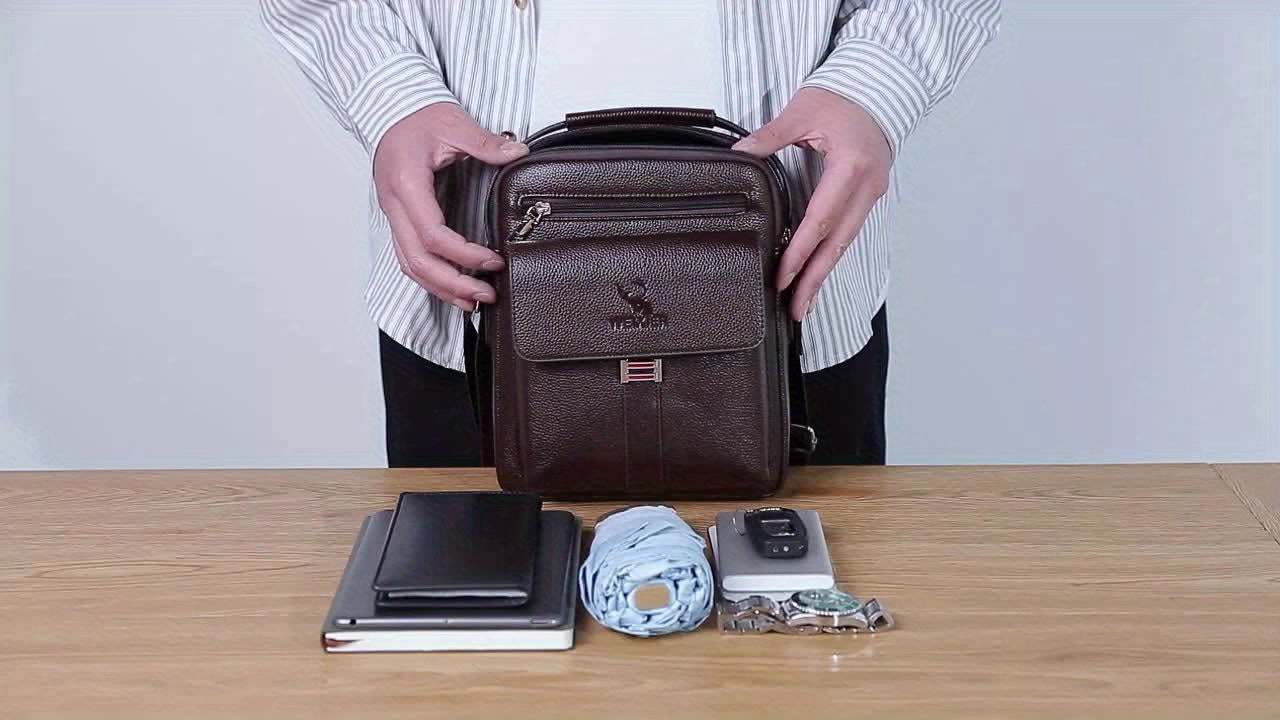 [حقيبة عمل كلاسيكية] حقيبة كتف رجالية كلاسيكية قابلة للتعديل من WEIXIER - مساحات تخزين متعددة، جيوب بسحاب، تصميم مضغوط، لون أسود، إغلاق بسحاب آمن، حقيبة كروس صغيرة