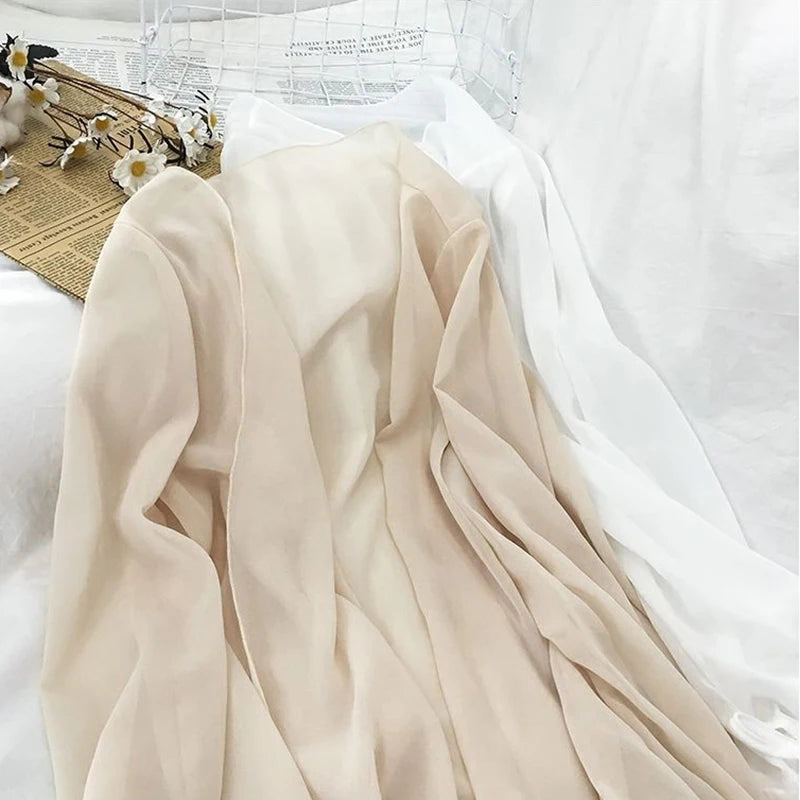 Women Chiffon Shirt Summer Fashion White Long Sleeve Sun Protection Cardigan Korean All Match Casual Chic Thin Female Tops New