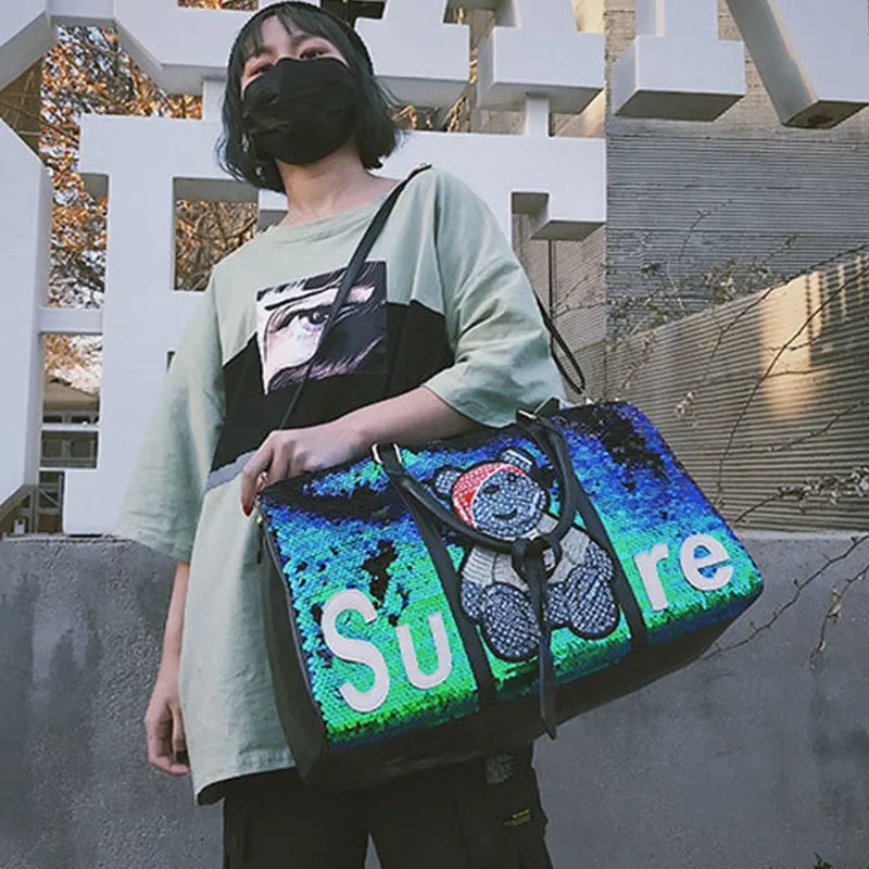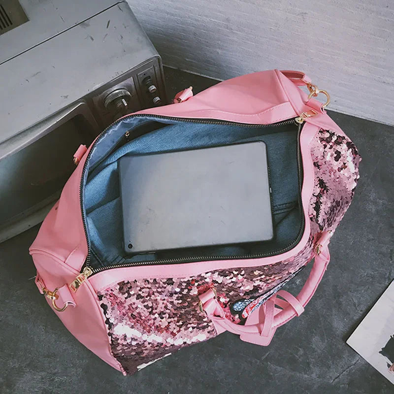 Women Travel Bag Large Capacity Shoulder Crossbody Bag Fashion Sequins Luggage Pack High Quality Handbag Luxury Lady Weekend Bag