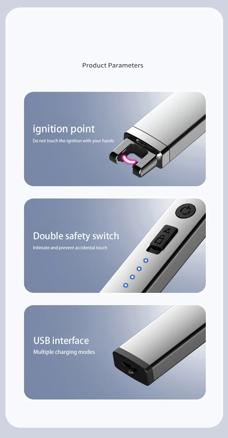 Technological designLightweight yet texturedUpgraded style design for a light luxury experienceLightweight and slim design provides a more comfortable touchSay goodbye to traditional ignition mode by preventing strong winds and no open flamesUsed in various environments: versatile, ignitable for daily use, gas for outdoor use, etc.