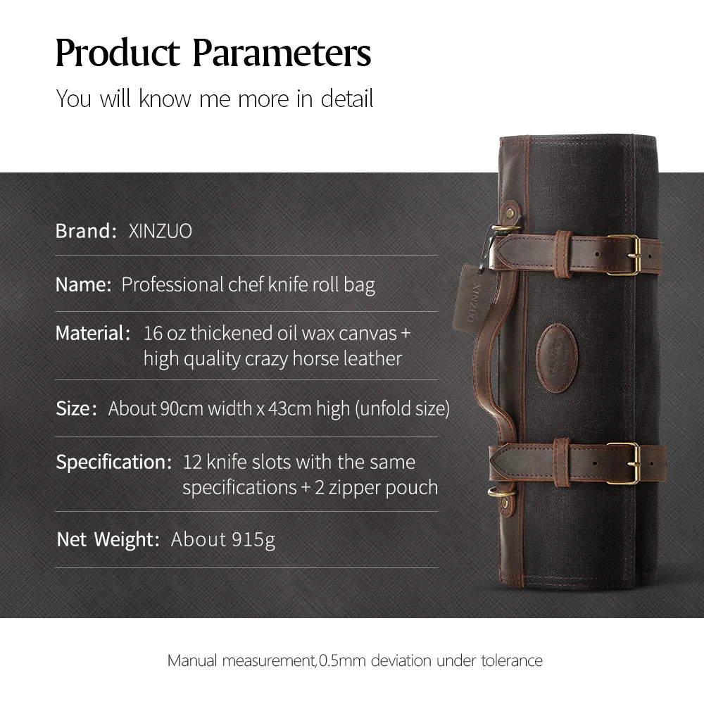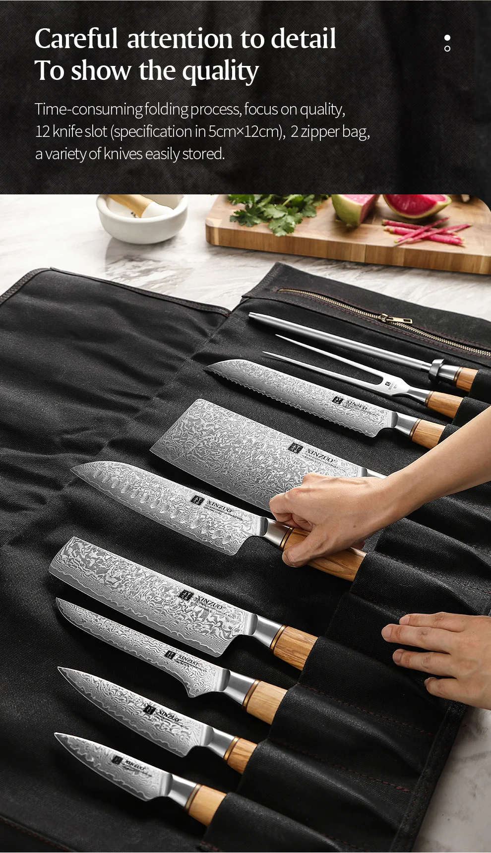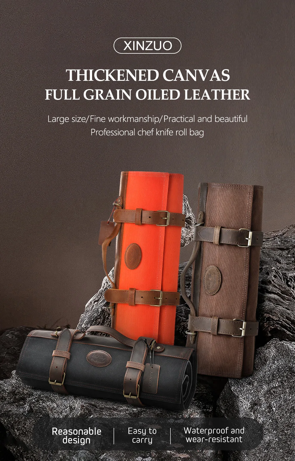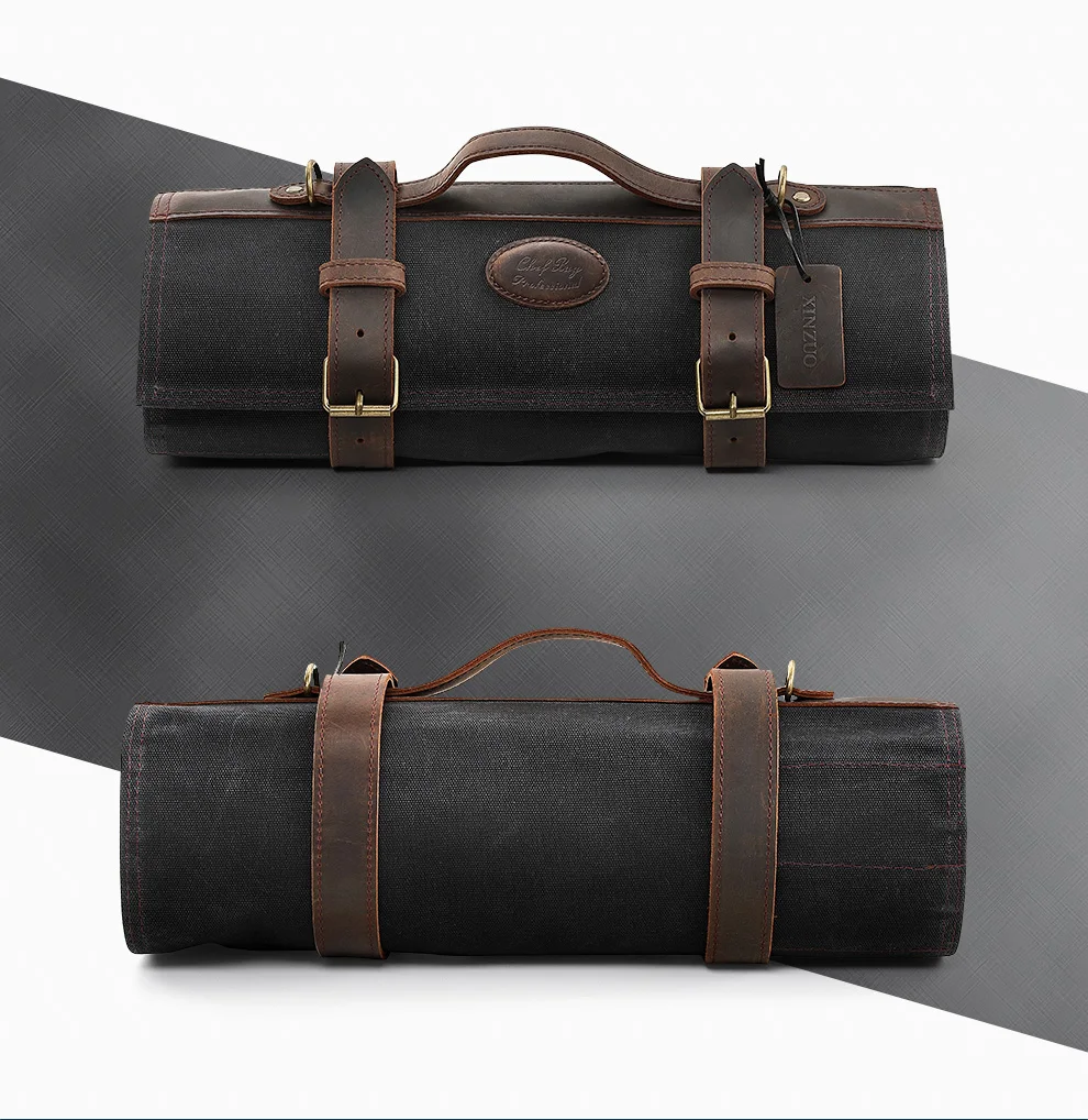 XINZUO Thickened Canvas Foldable Chef Roll Bag Kitchen Knife Bags Cooking Portable Durable Knife Storage Pockets Carry Case