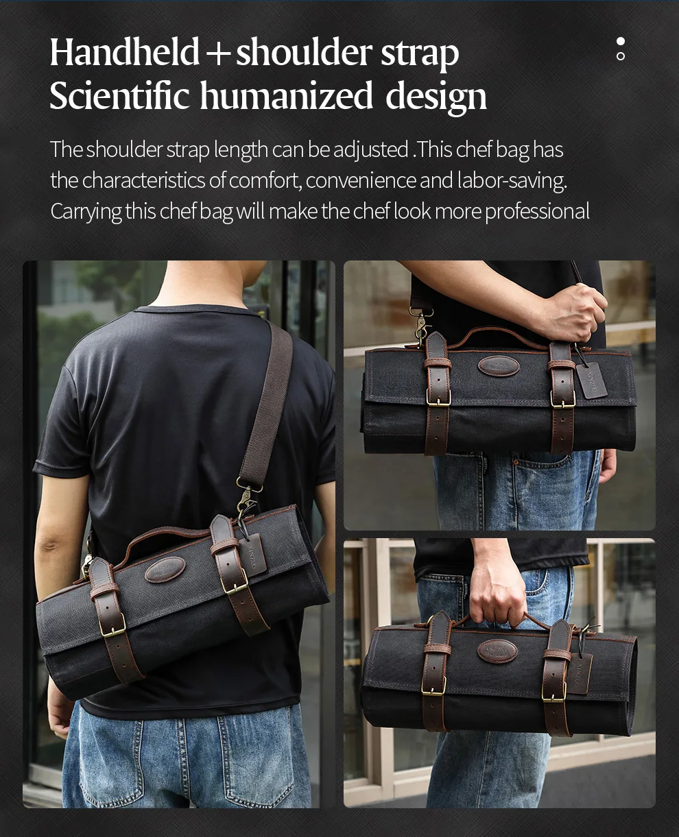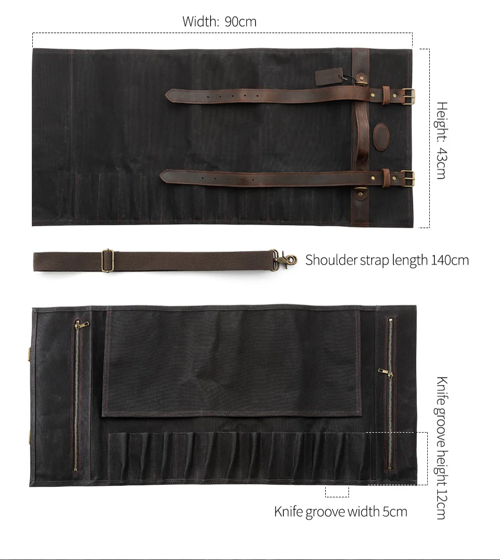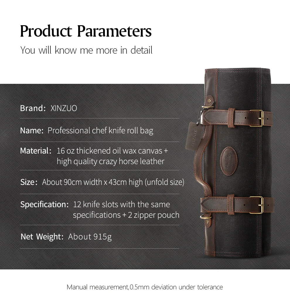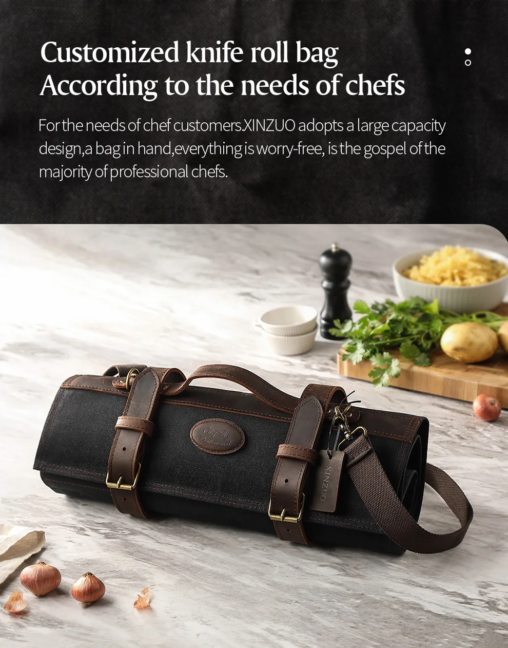 XINZUO Thickened Canvas Foldable Chef Roll Bag Kitchen Knife Bags Cooking Portable Durable Knife Storage Pockets Carry Case