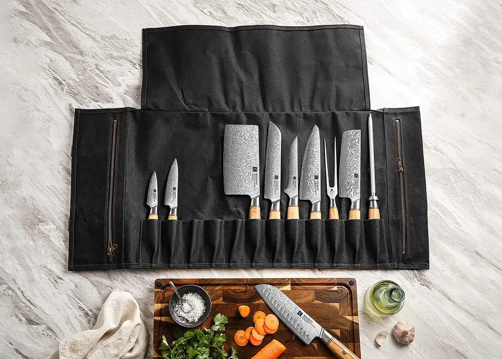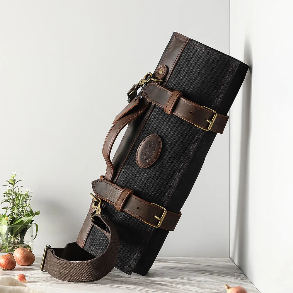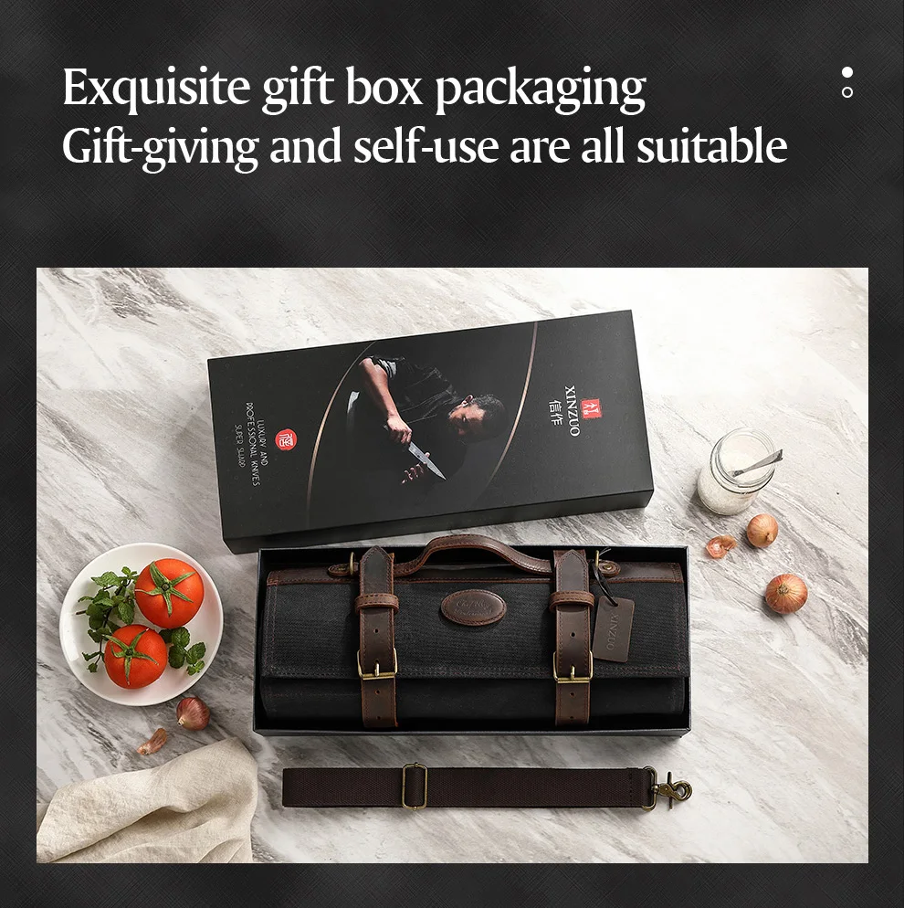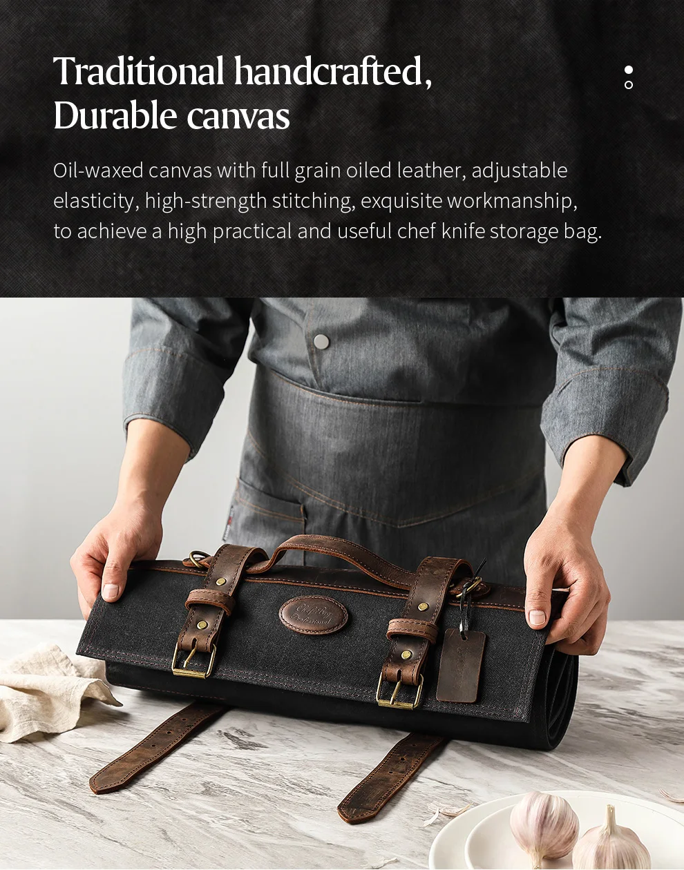 XINZUO Thickened Canvas Foldable Chef Roll Bag Kitchen Knife Bags Cooking Portable Durable Knife Storage Pockets Carry Case