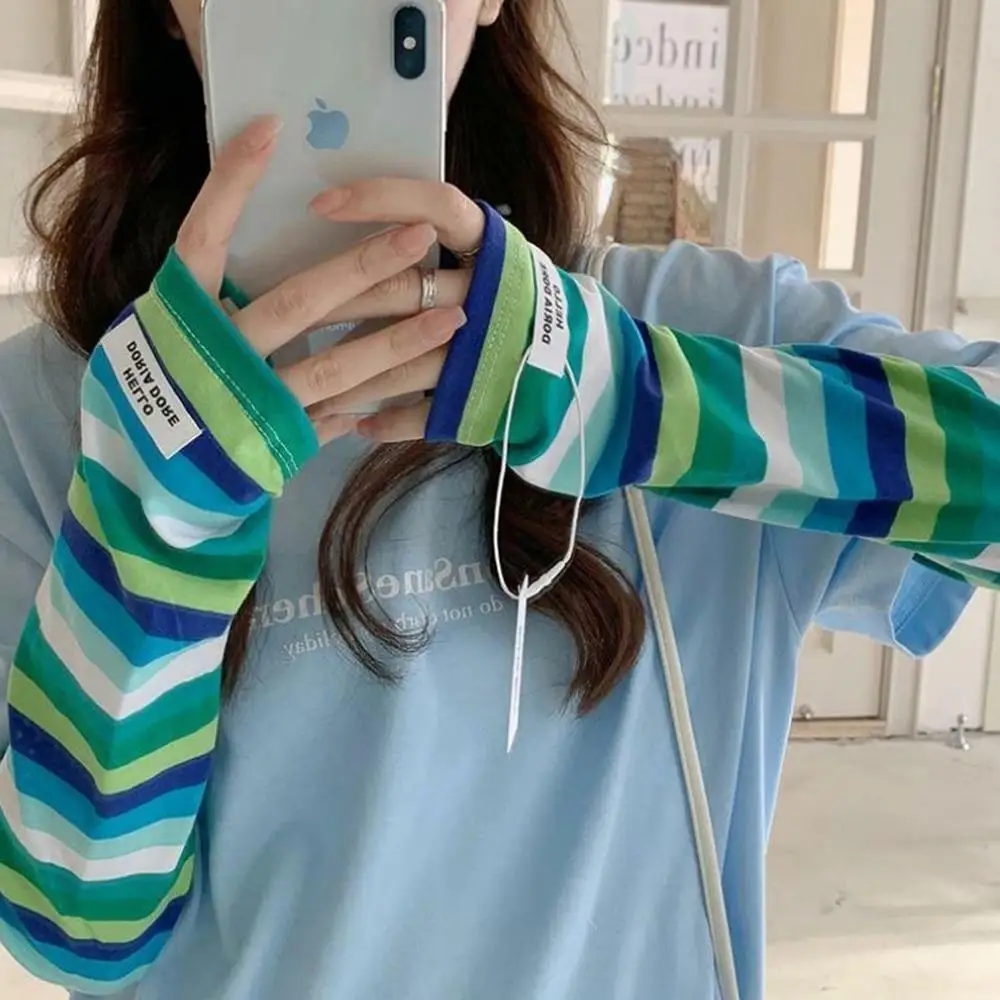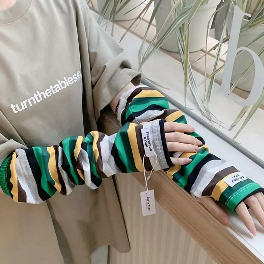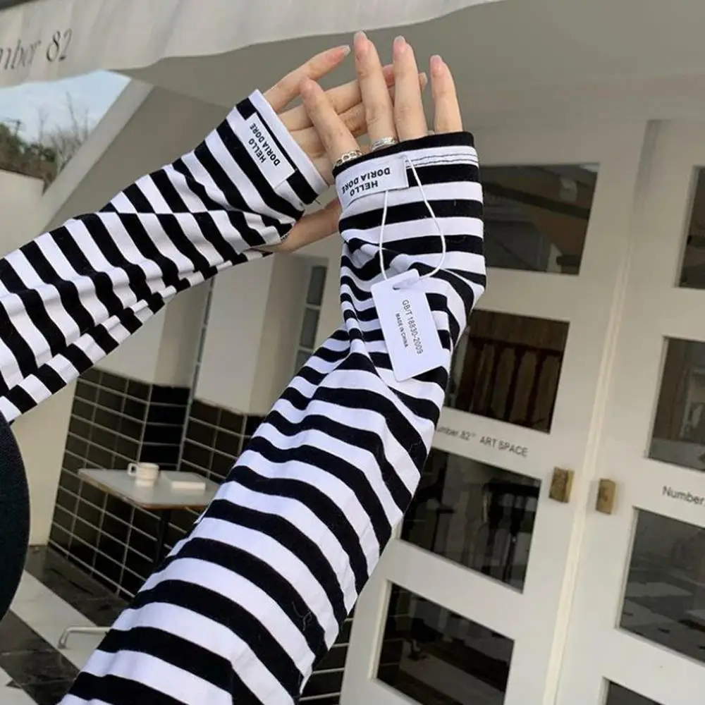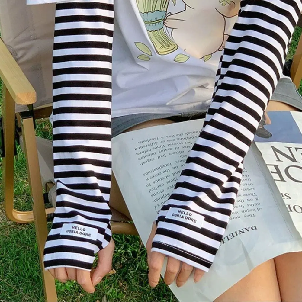 1 Pair Dual-Color Striped Sun Protection Arm Sleeves Loose Summer Outdoor Protector Solar Sleeves Women Ice Sleeve Arm Protector