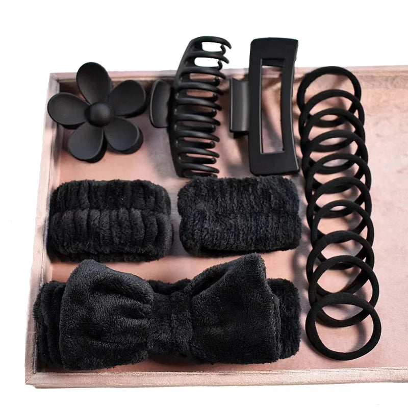 16pcs Women Multi-colored Soft Bow Headband Hair Claw Combination Set Holiday Gift Makeup Shower Sports Skincare Accessories