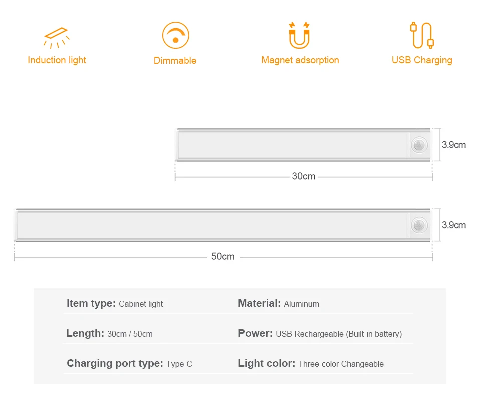 Product Overview: Engineered with premium aluminum construction, this intelligent LED bar light combines advanced motion detection technology with versatile lighting options. Available in two practical sizes: 30cm (11.8 inches) and 50cm (19.7 inches), it's designed to enhance your space with efficient, eye-friendly illumination.