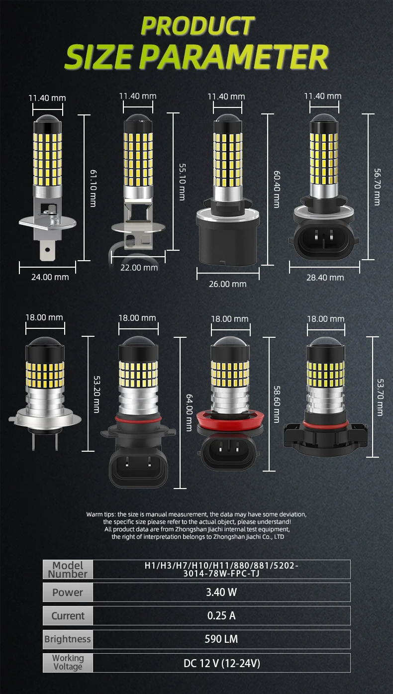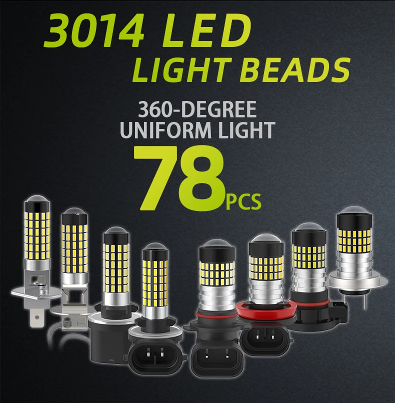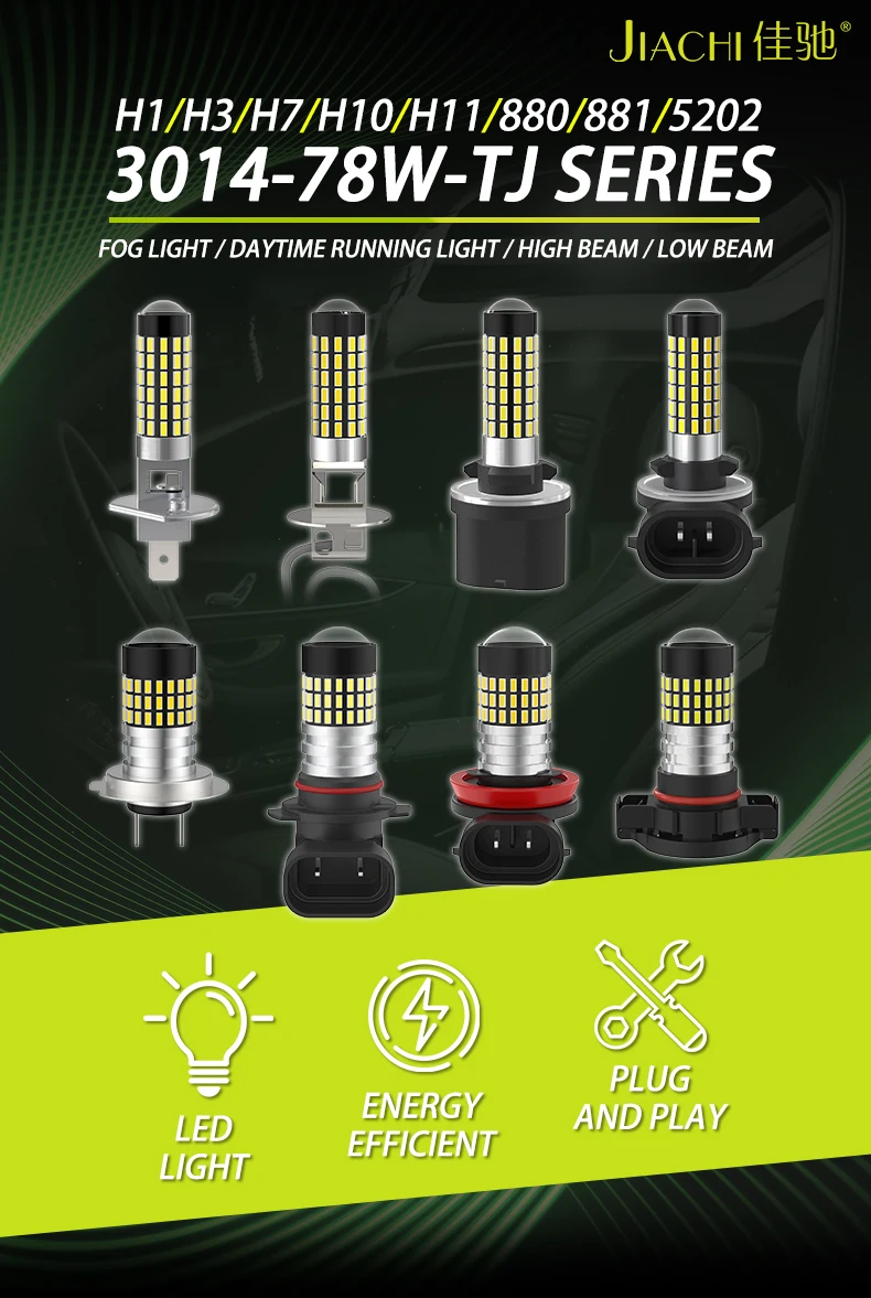 Jiachi 2PCS H1 H3 Replacement Bulb H7 H10 880 881 5202 Led Auto Fog Lamp 3014 78 Chip Daytime Running Light 6000K White 12-24V