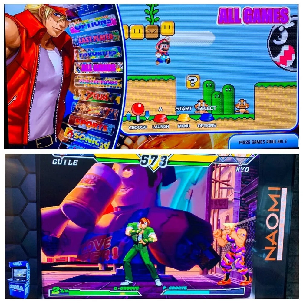 4: Most games have video previews that play too as you scroll down through the game list on each system. Awesome menu background themes loaded which can be easily switched up (many shown in my pics). I have custom boot up videos (randomized) that play while booting up system. Custom launch screens. Games allow saving game play at ANY spot within the game. Games can be identified as "favorites" so they can easily be found in the favorite folder or sorting by system. Awesome custom collections are already setup. The Arcade Favorites collection has hundreds of the best arcade games (from the thousands on system), and I setup each game with its own game-specific custom bezel (bezels fill in black bars on side with content). Other ARCADE Collections include: Atari Classics; Banpresto; Capcom Play System I, II & III; Cave; Data East; Konami; Midway; Namco; Nintendo; Psikyo; Sega; ShMUps; SNK; Taito; Toaplan; Visco; Williams.