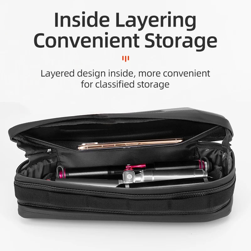 ROCKBROS Hard Shell Bicycle Bag MTB Road Bike Bag Carbon Pattern Waterproof Top Tube Bag Cycling Saddle Bag 1.5L High Capacity