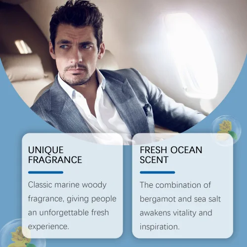 Our Sea Wood Luxury Eau de Toilette contains bergamot extract, cedar extract. It can give people an unforgettable refreshing experience. The combination of bergamot and sea salt awakens vitality and inspiration. Its use method is very simple: gently spray the perfume on the wrist, neck, behind the ears and other pulse points, each spray 1-2 times, to achieve the best perfume distribution effect. And can not stimulate the skin, suitable for all skin types, aroma levels, lasting, showing the maturity and charm of the perfume holder.