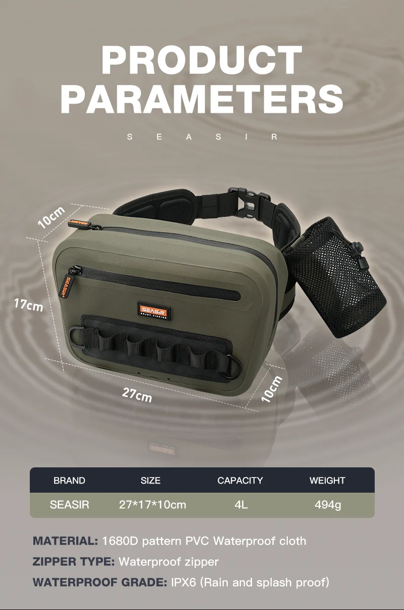 Seasir Waterproof Fishing Waist Bag Multifunctional Suspension large capacity 4L Bag 1680D PVC Side Water Bottle Pocket fishing storage bag