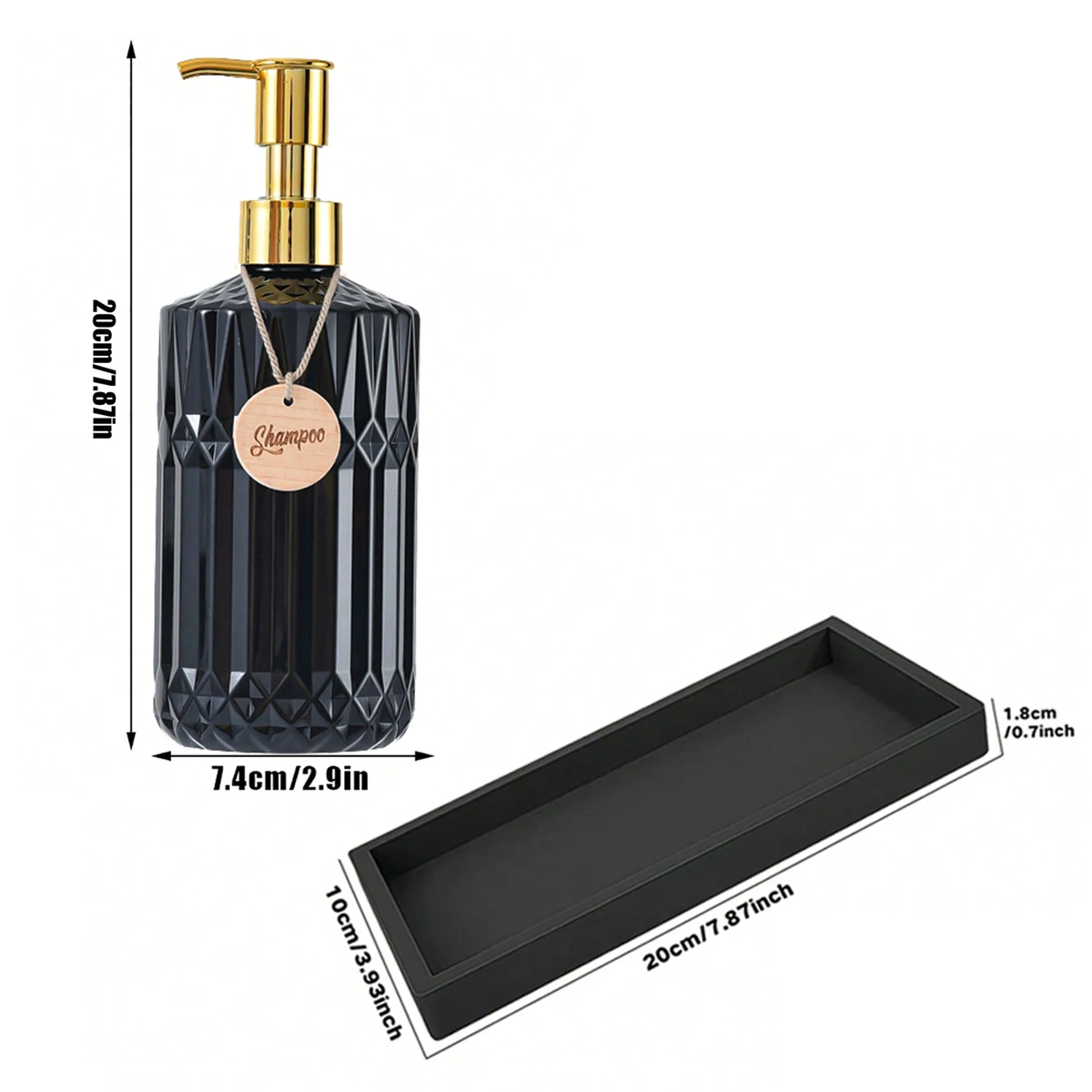 Soap Dispenser Rhombus Lotion Bottle Bathroom and Kitchen Sink Dish Soap Hands Soap Shampoo Container with Silicone Tray Tags
