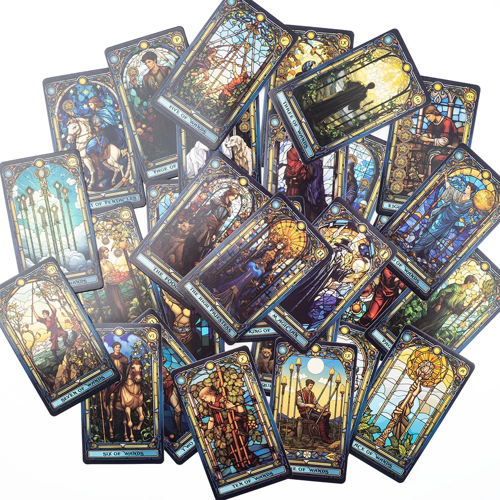 Stained Glass Tarot A 78-Card Deck Leisure Entertainment Game Card Family Gathering Divination Board Playing Games 10.3*6Cm