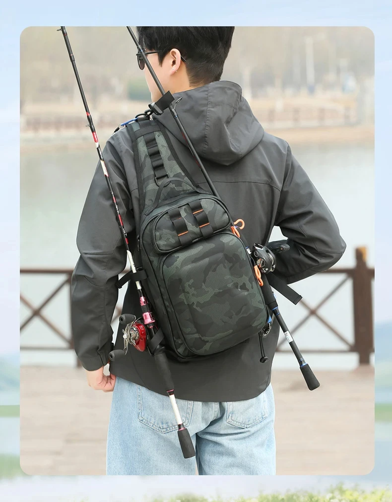 Tactical Fishing Sling Shoulder Bag with Rod Holder Large Storage Outdoor Hiking Climbing Camping Rucksack Chest Fanny Pack