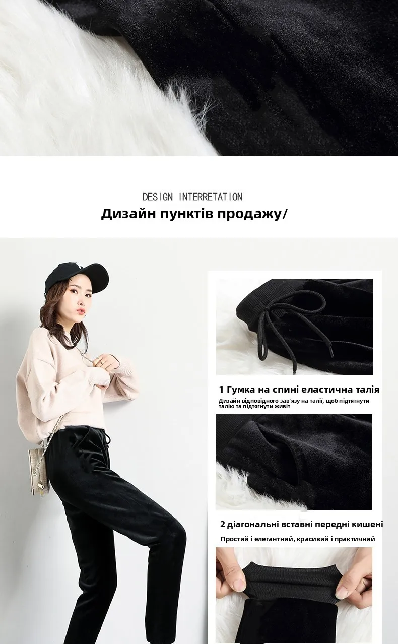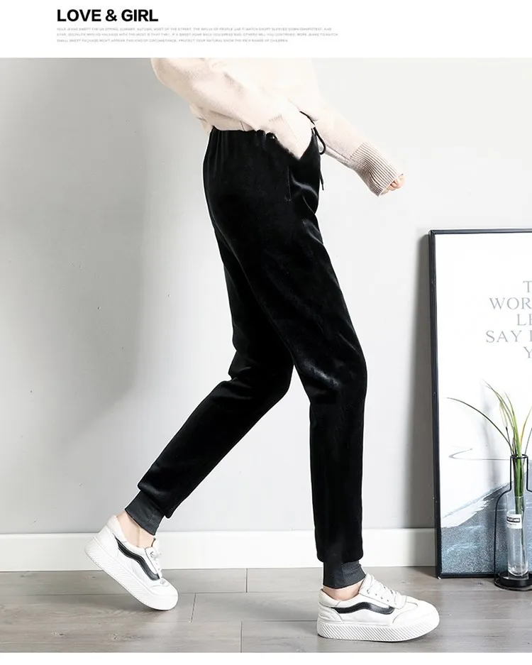 Thiened Fce/Lightweight Velvet Women's Autumn Winter Warm Loose Harem Casual Sweatpants Slimming Trendy High Waist Nine ...