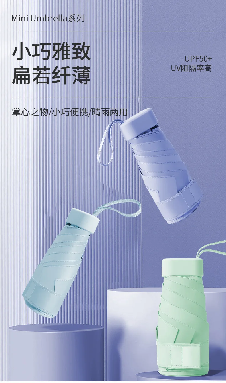 UPF50+ Mini Umbrella Sun Protection Pocket Umbrella Capsule Rainproof Outdoor Traveling Sunshade Portable Parasol Rain Umbrella