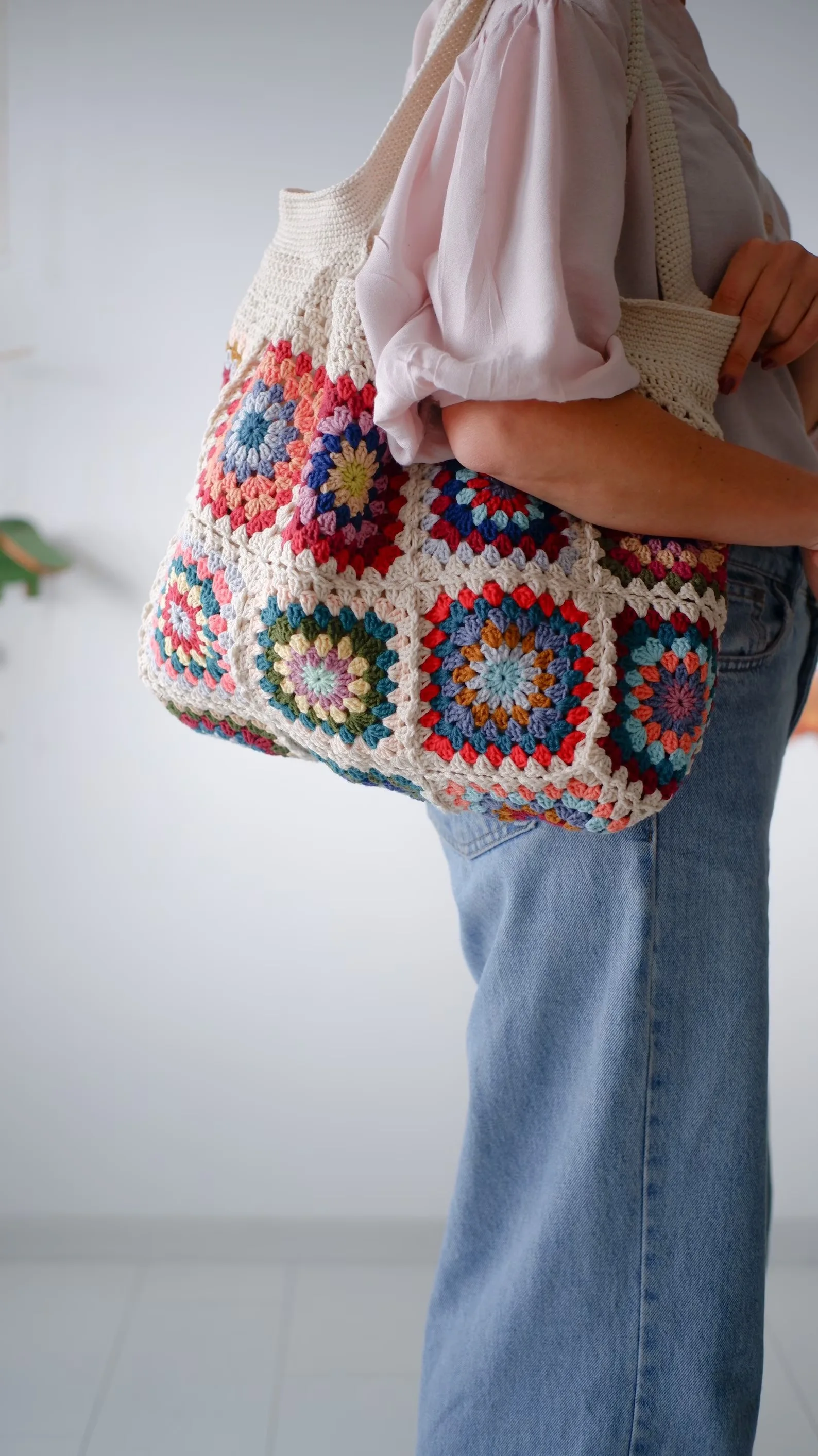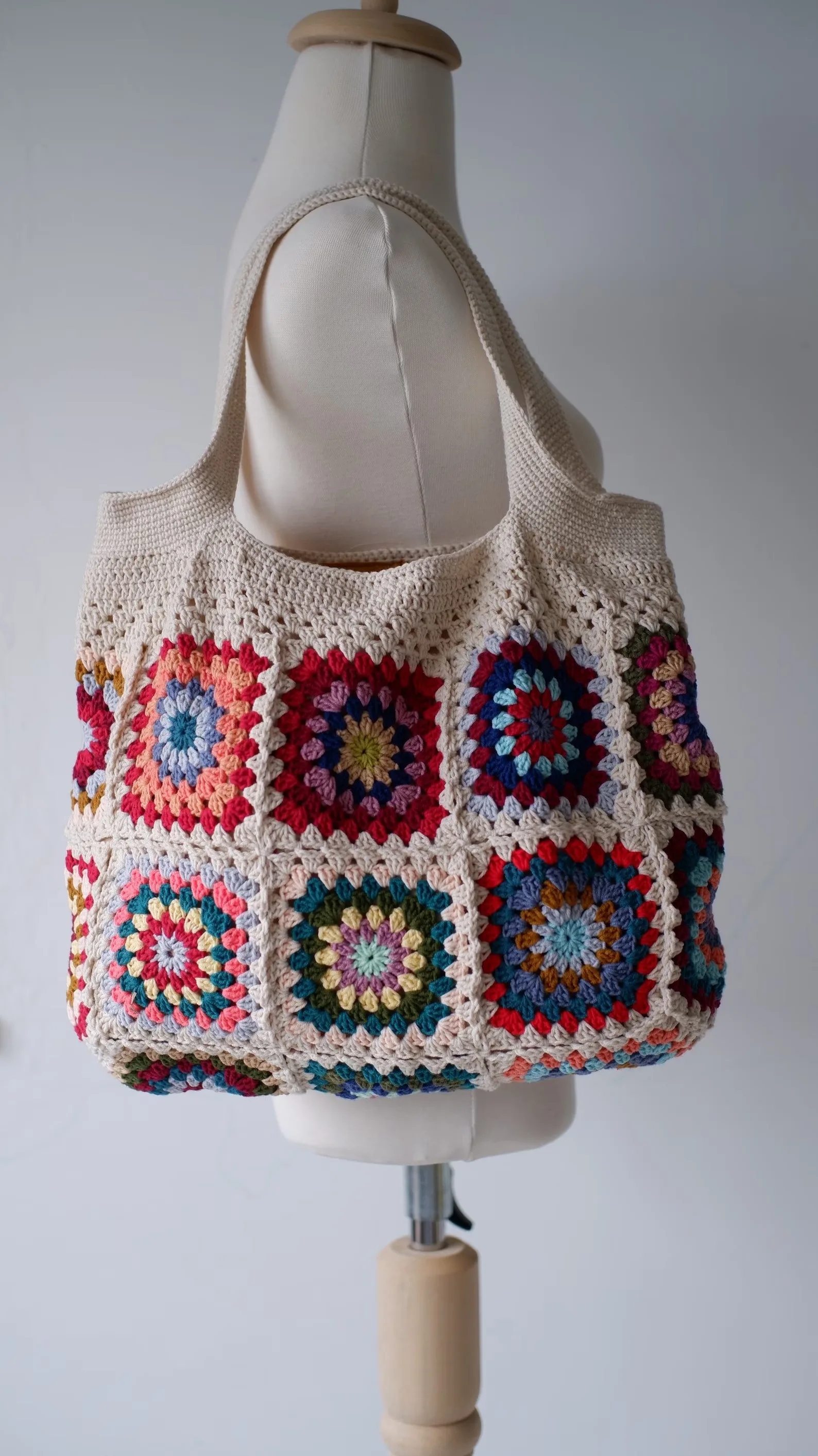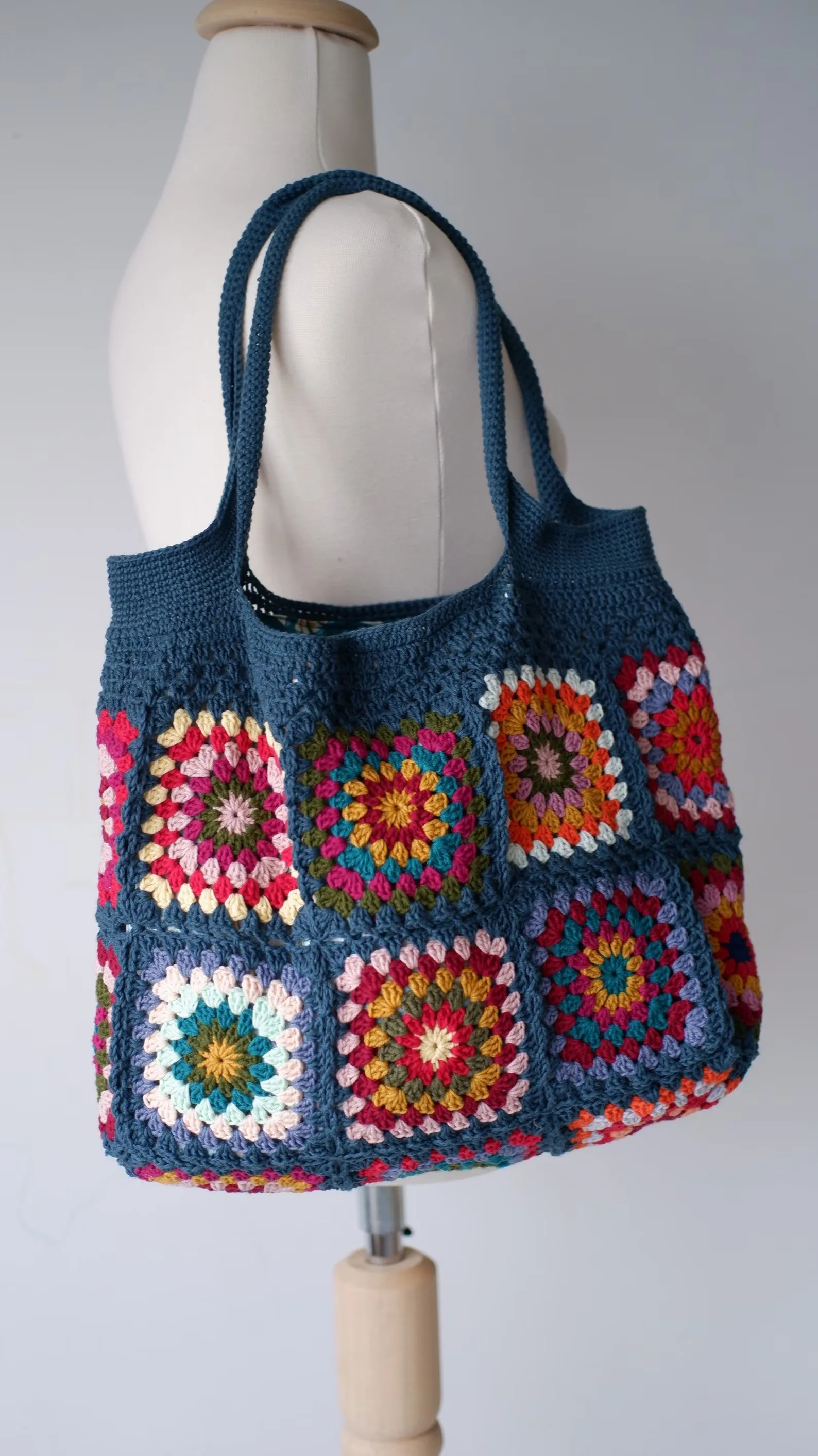 Vintage Crochet Granny Shoulder Tote Bag Women Boho Chic Hippie Handbags Knitted Handmade Woven Big Shopper Purses Cute