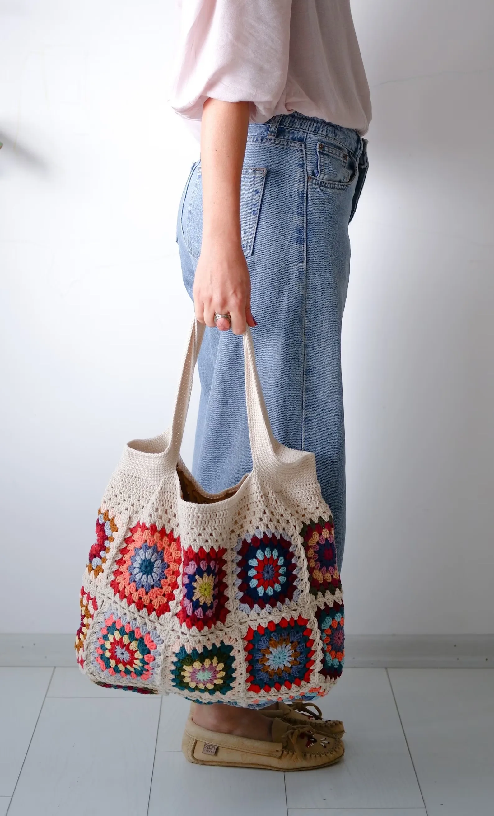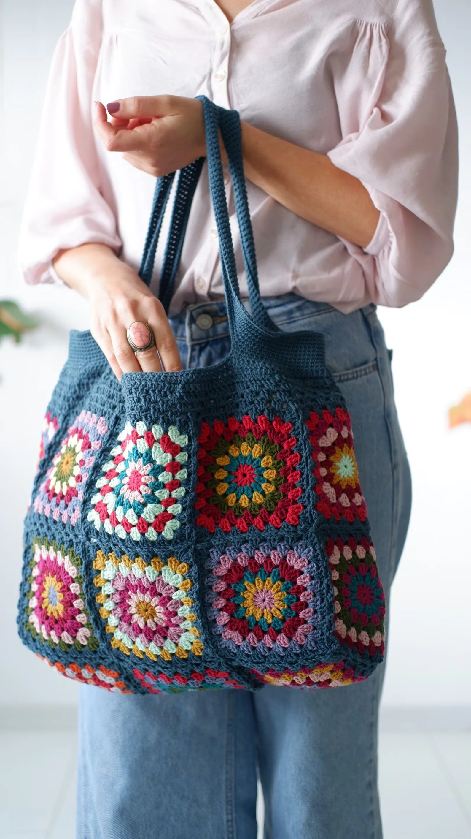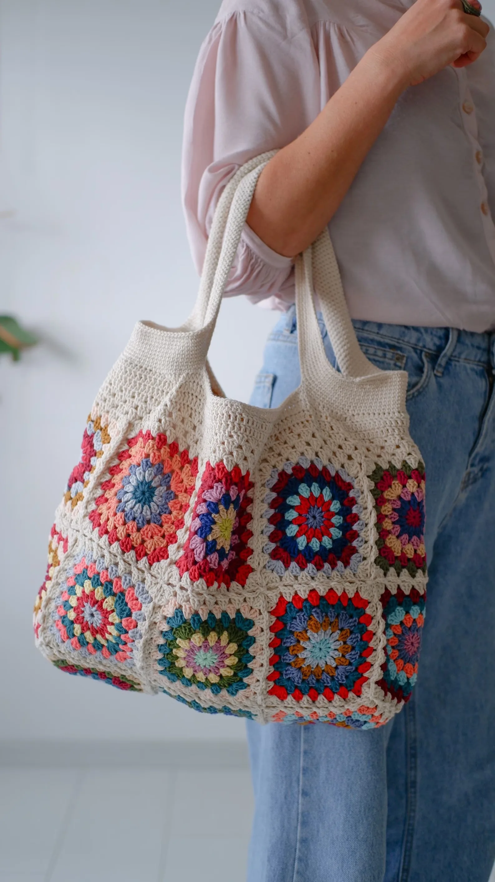 Vintage Crochet Granny Shoulder Tote Bag Women Boho Chic Hippie Handbags Knitted Handmade Woven Big Shopper Purses Cute