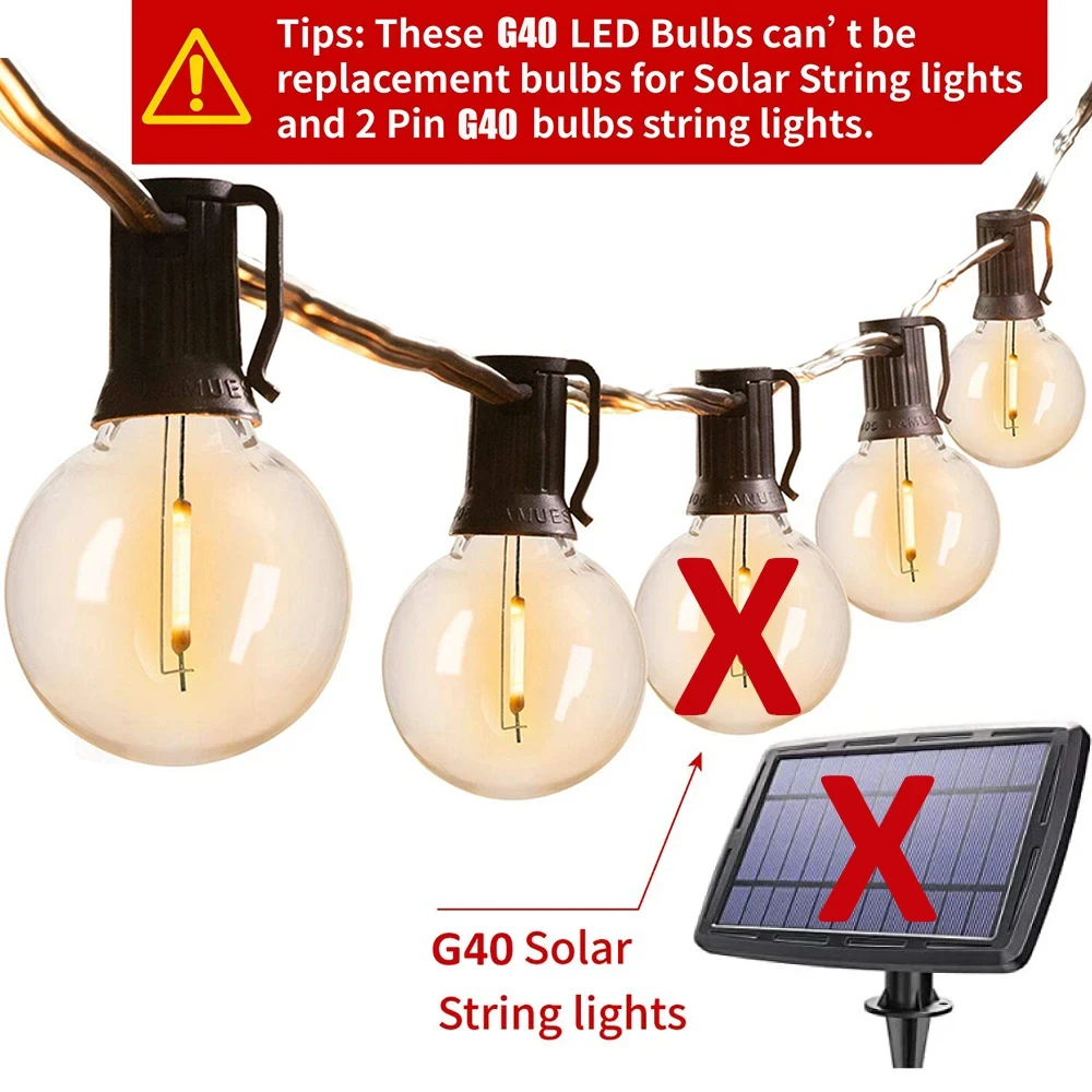 E12 Base and Wide Aplication: LED vintage G40 light bulbs with candelabra screw base that fits e12 and c7 based sockets, not only the excellent decorative lighting for indoor chandeliers, sconces and fixtures where the bulb is visible, but also the best replacement bulbs for LED G40 outdoor string lights in your garden, backyard and balcony terrace.