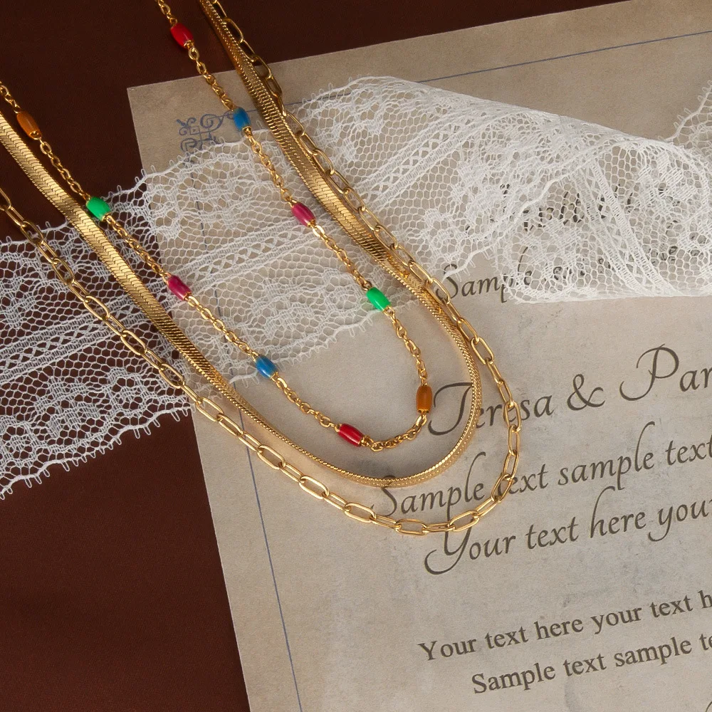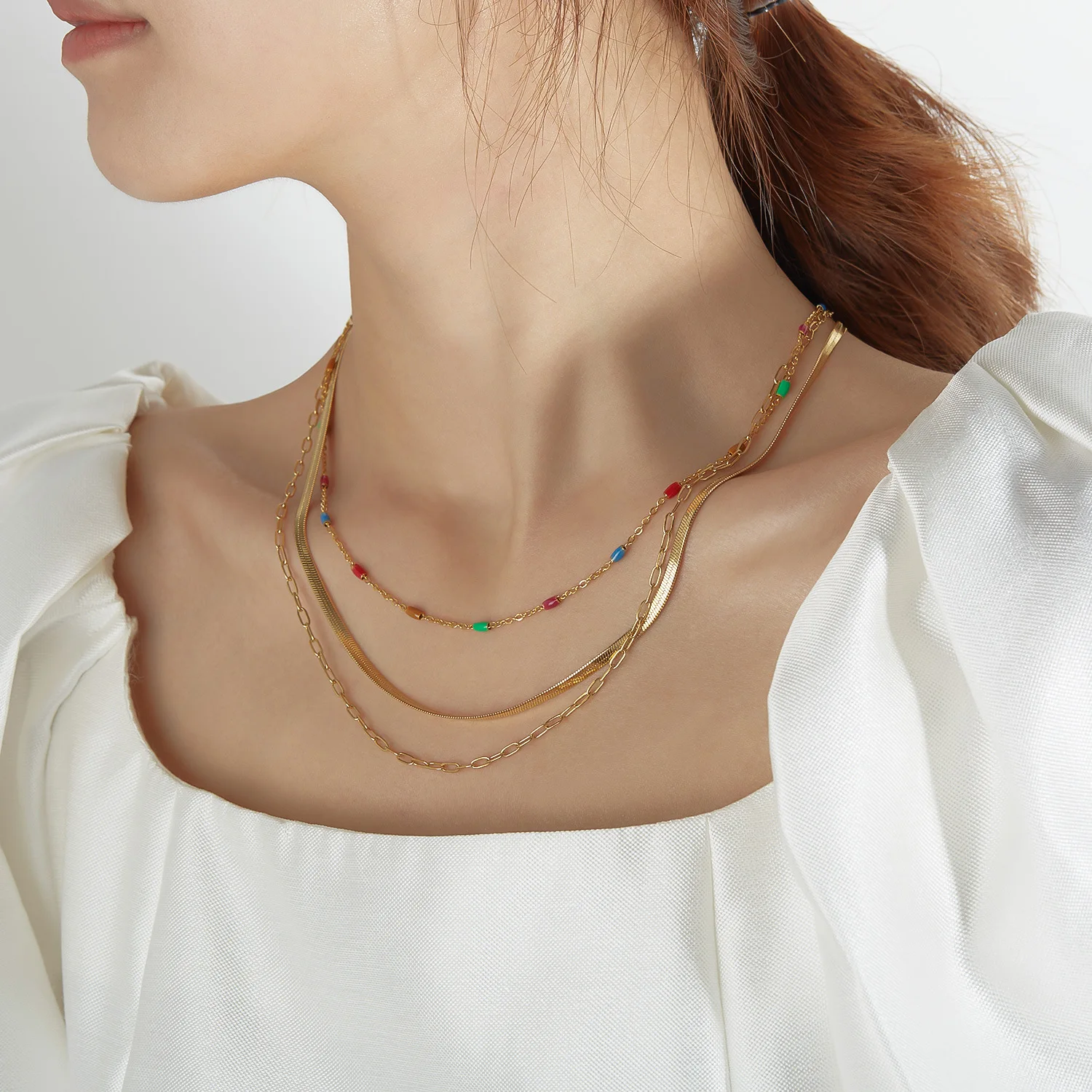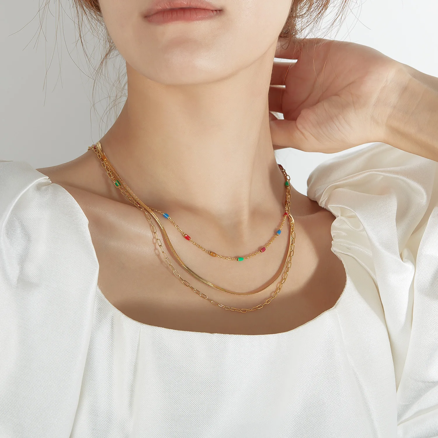 Wholesale High-Grade Stainless Steel Snake Bone Chain Necklace for Women Fashionable Colorful Drip Glue Gold Plating Weddings
