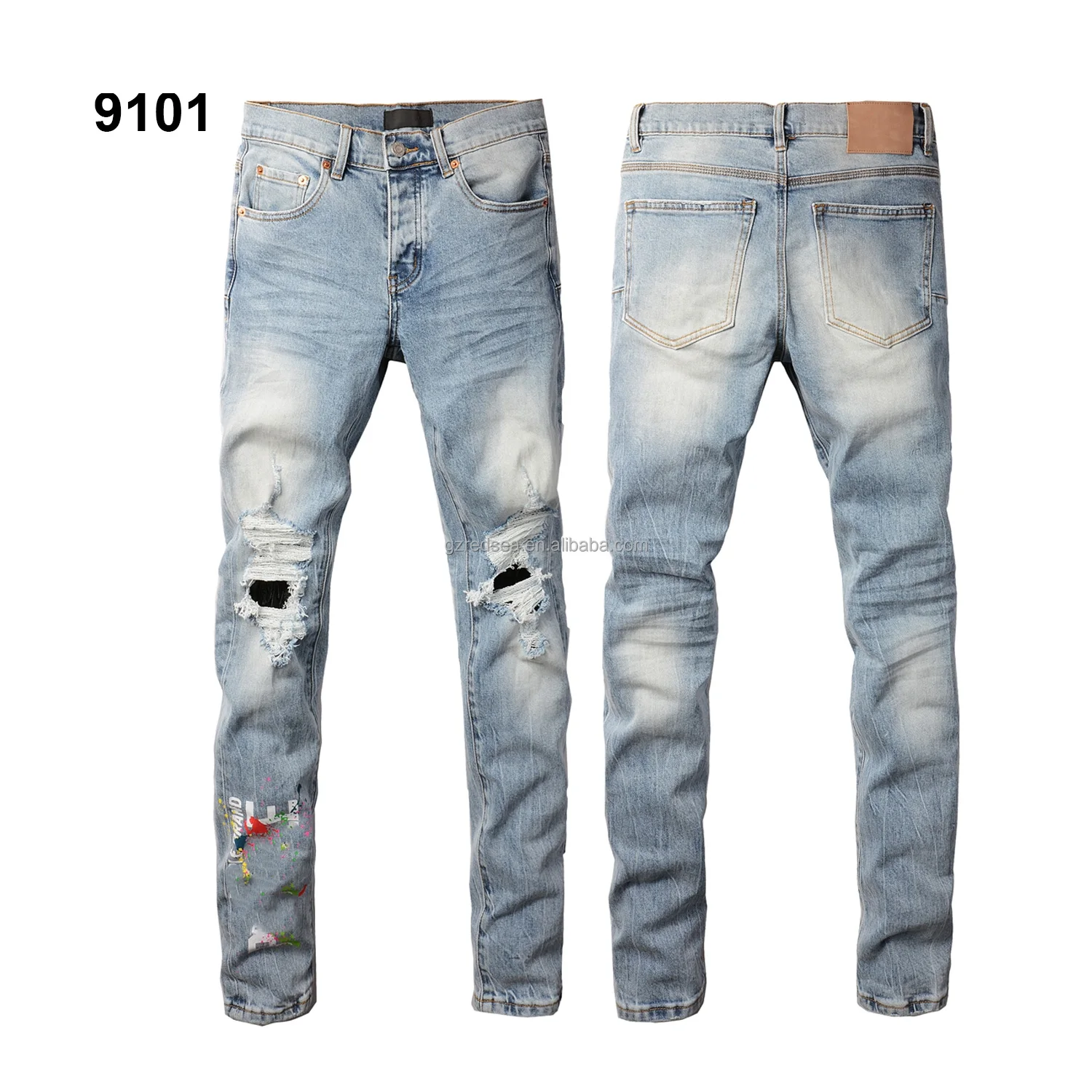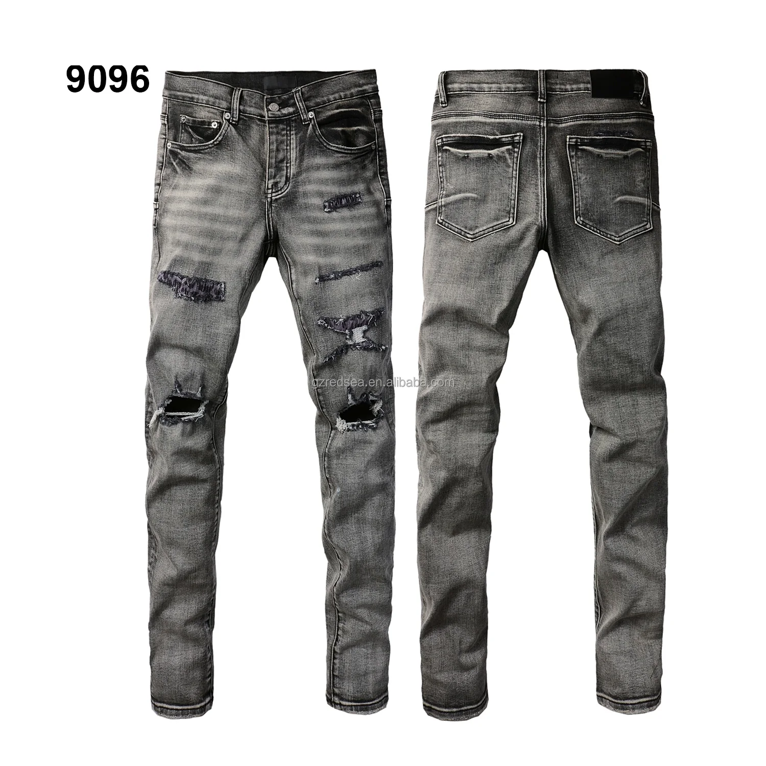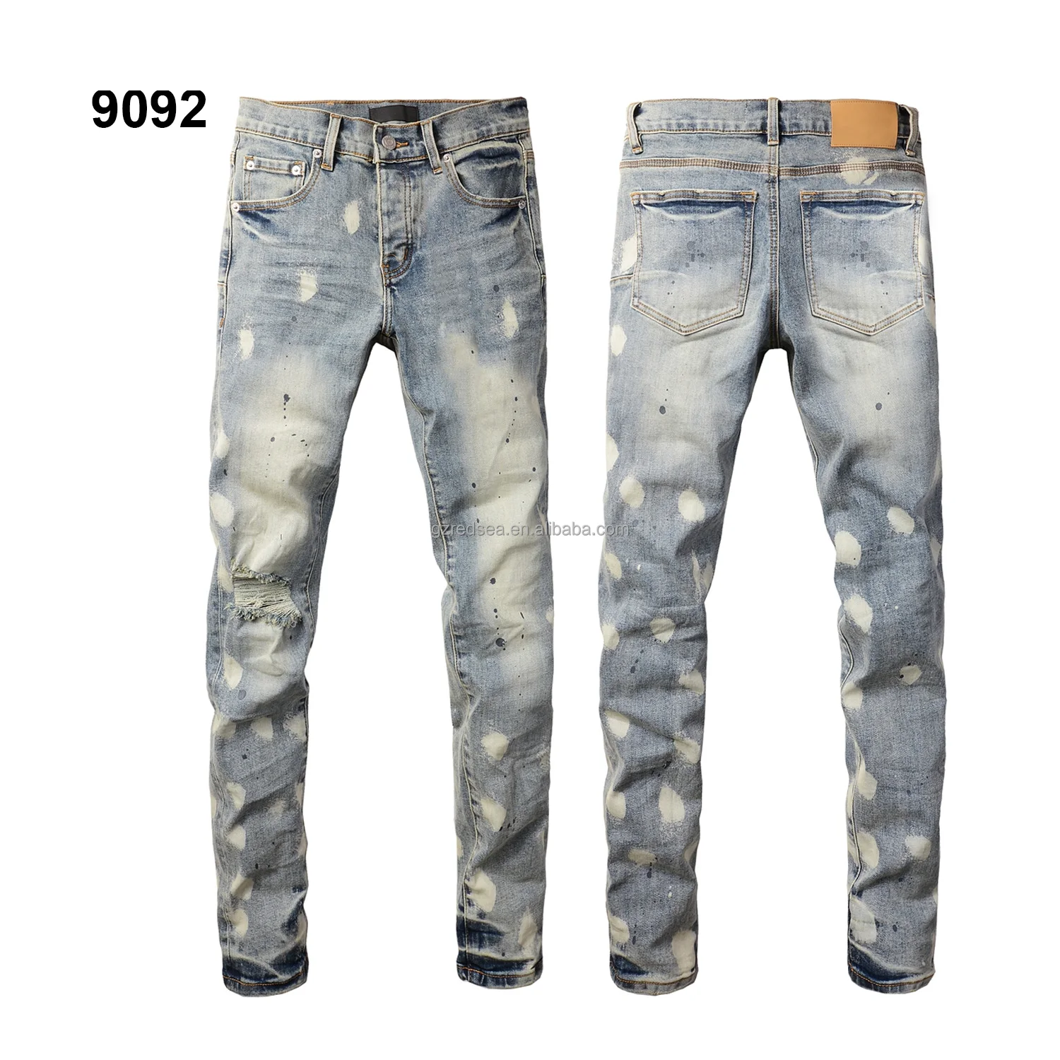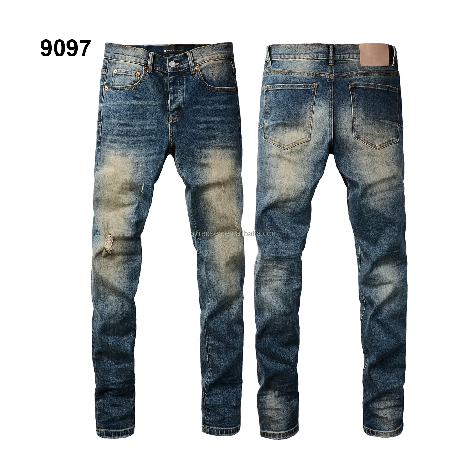 Wholesale Top Quality Brand Jeans Brand Men Fashion Designer Stretch Ripped Men's Mid-rise Ripped Denim Trousers