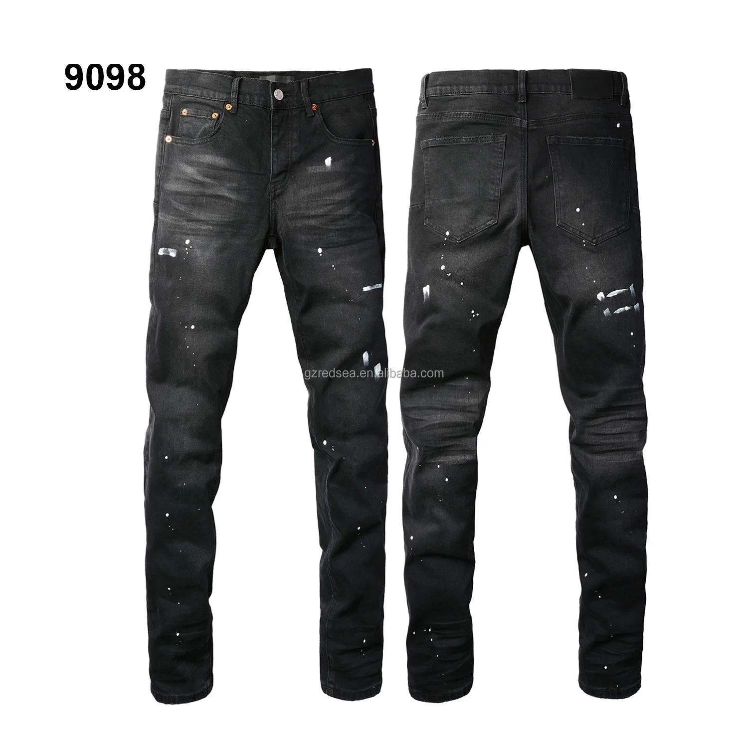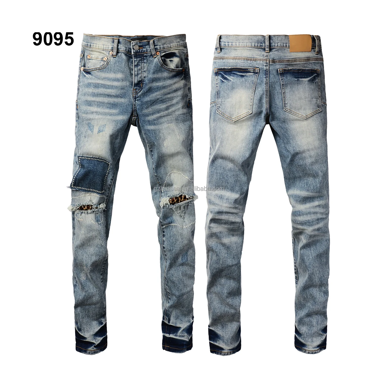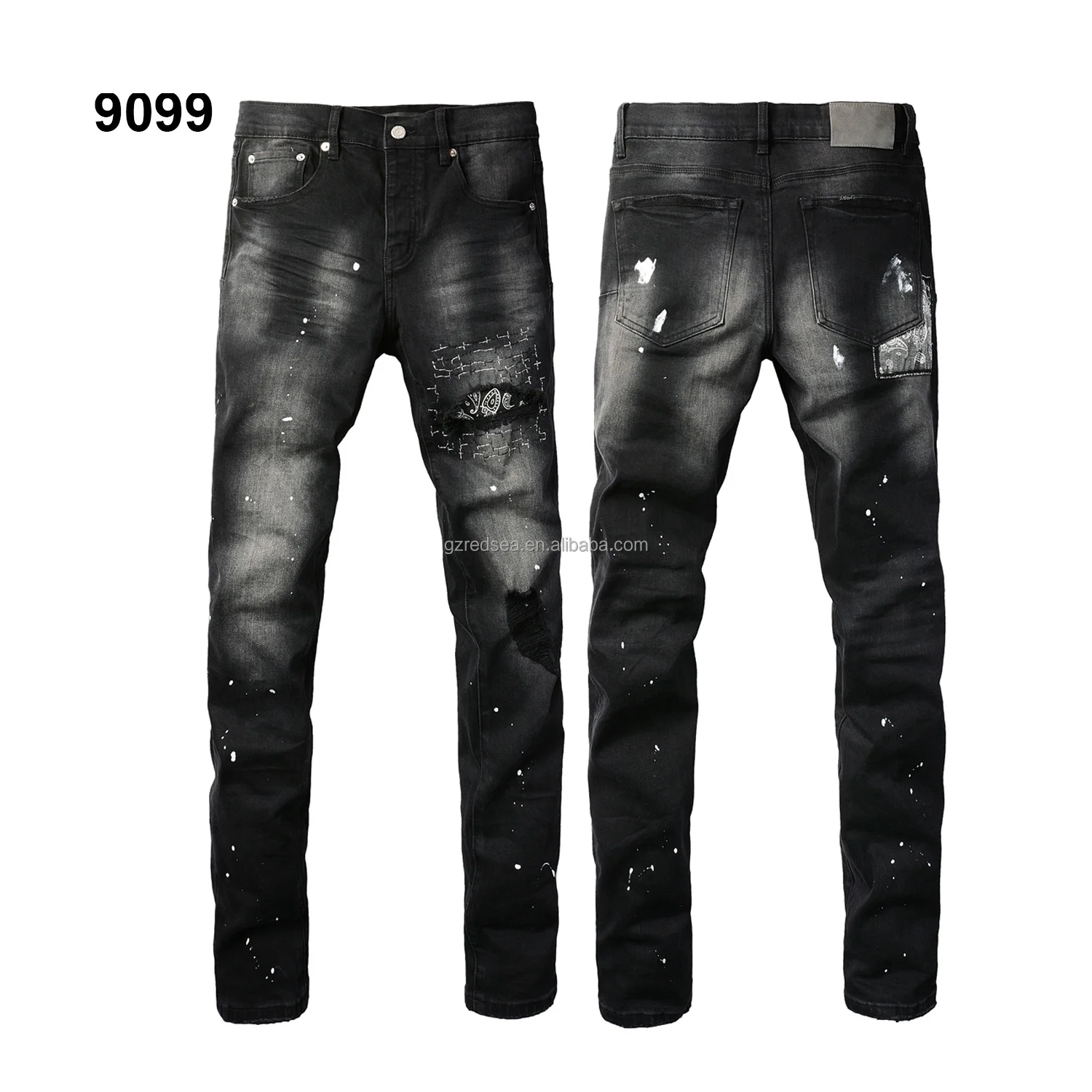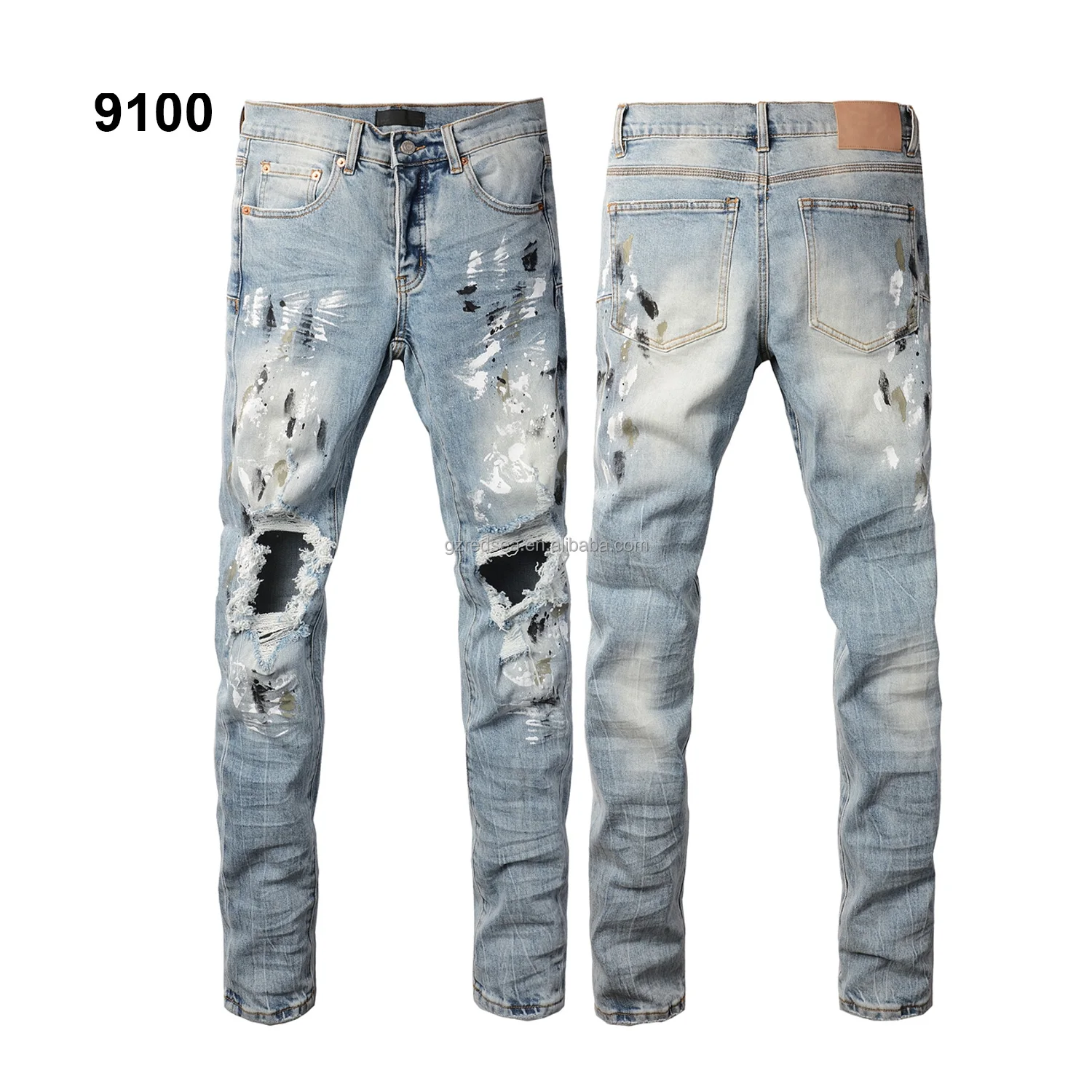 Wholesale Top Quality Brand Jeans Brand Men Fashion Designer Stretch Ripped Men's Mid-rise Ripped Denim Trousers