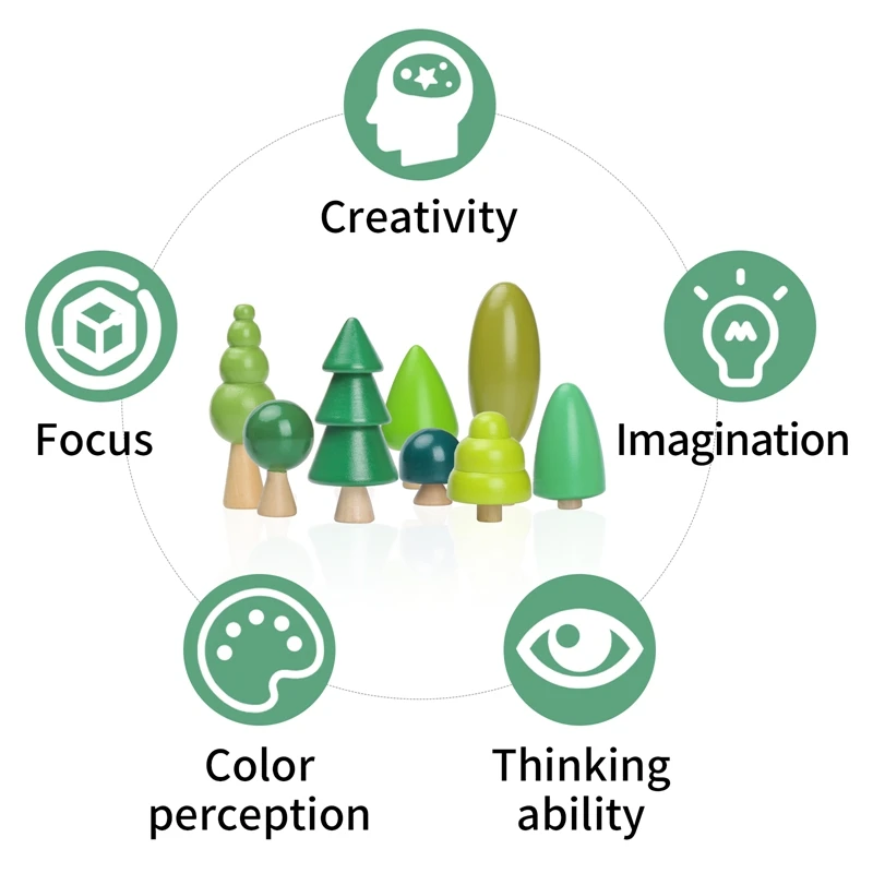 Creativity cultivation: Encourage children to imagine and freely build the forest scene in their minds.